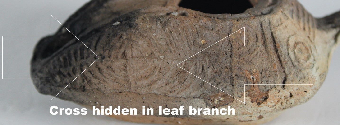 Ancient Holy Land Oil Lamp Artifact 2 Hidden Christian Crosses 300-600AD COA 112