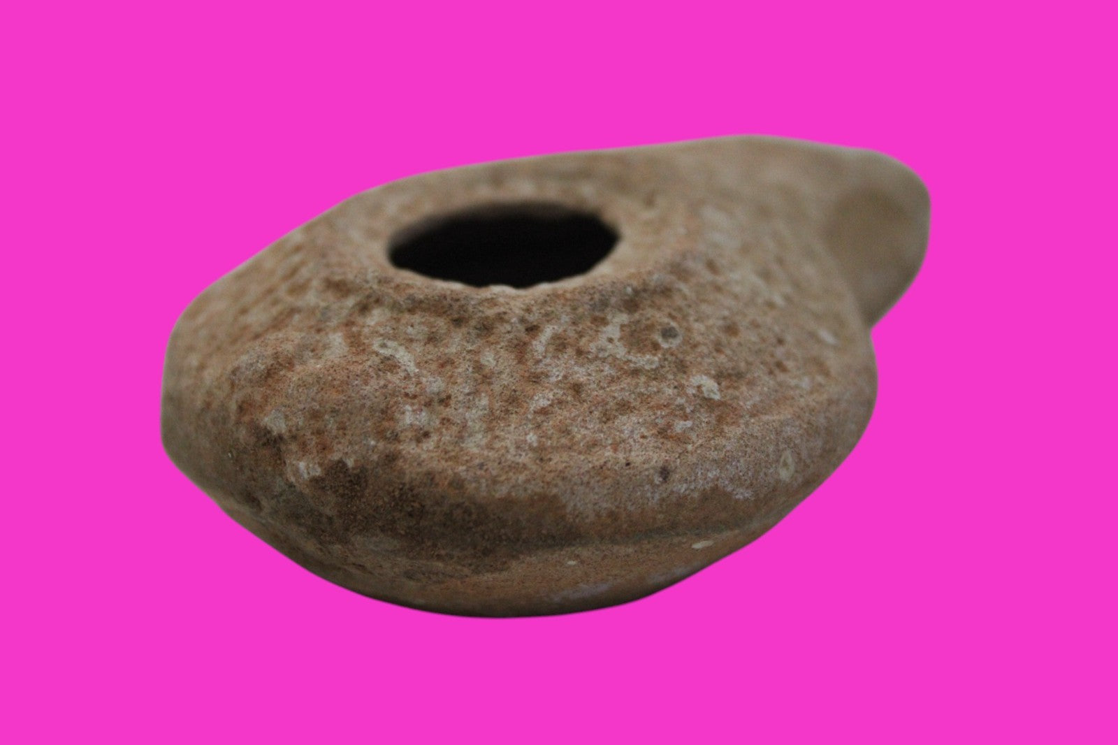 Dimensions: 3 ¼ inches long, 2 ¼ inches wide, 1 inch tall, weighs 45 grams. Provenance: Excavated in Judea in the late 1990’s. Ex Private Tel Aviv Collection. Acquired by the Hamadian Antiquities Gallery in The Old City of Jerusalem. Export to the United States approved by the Israeli Antiquities Authority in 2025. Acquired by The Artifact City Collection in September 2025. Description: Terracotta oil lamp made from a two-part mold. Oil from animal fat or olives were used with a wick to provide lighting. Oil lamps were mass produced in large quantities throughout the Holy Land and surrounding areas. Their use was significant in both Jewish and early Christian religious ceremonies. They were the equivalent of today’s “light bulbs”.