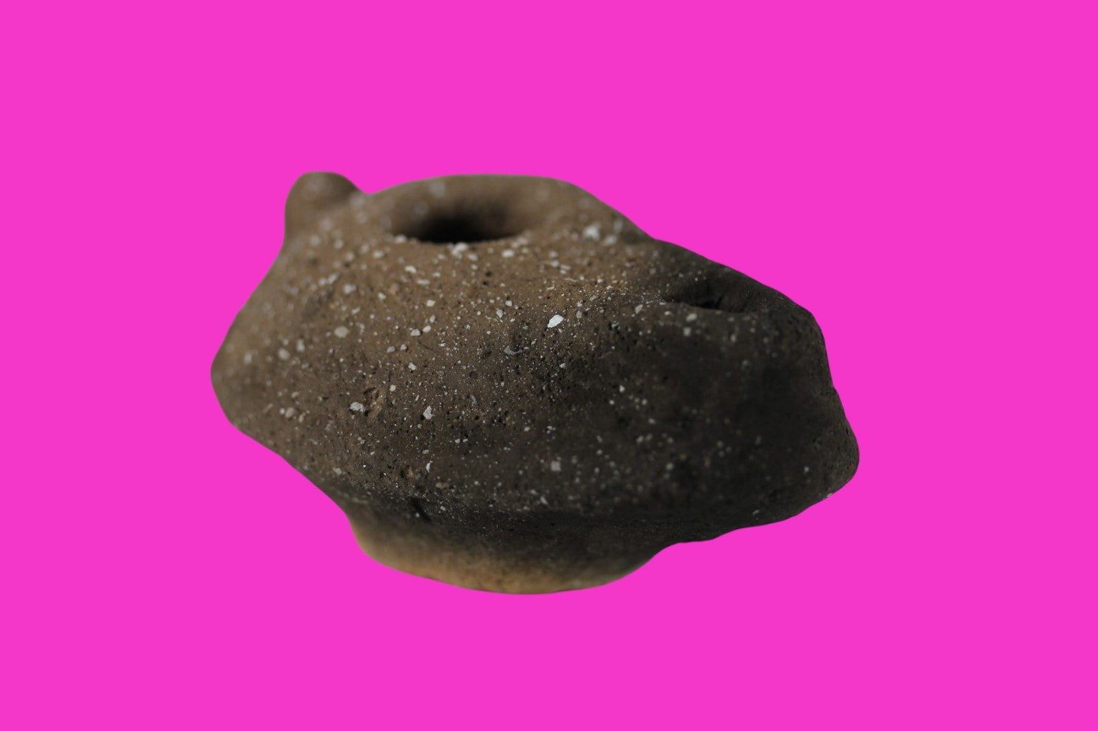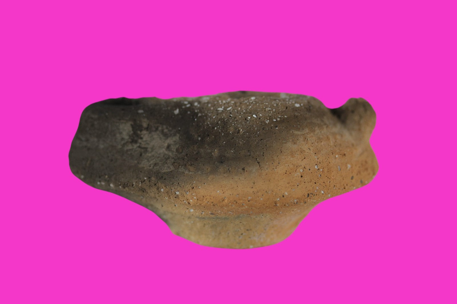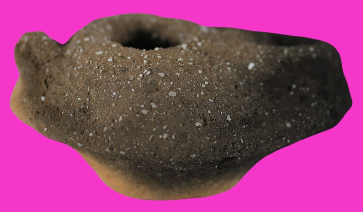 Dimensions: 1 ½ inches tall, 2 ¼ inches wide, 3 ¼ inches long, weighs 98 grams. Provenance: Ex. Private Tel Aviv collection. Collected in the 1990’s. Acquired by John McIntosh, MSE, MBA, Ancient Artifacts & Treasures, Winter Park, Florida in 2022. Acquired by The Artifact City collection in 2025. Description: Redware oil lamp made from a two-part mold. Oil from animal fat or olives were used with a wick to provide lighting. Oil lamps were mass produced in large quantities throughout the Holy Land and surrounding areas. Their use was significant in both Jewish and early Christian religious ceremonies. They were the equivalent of today’s “light bulbs”.