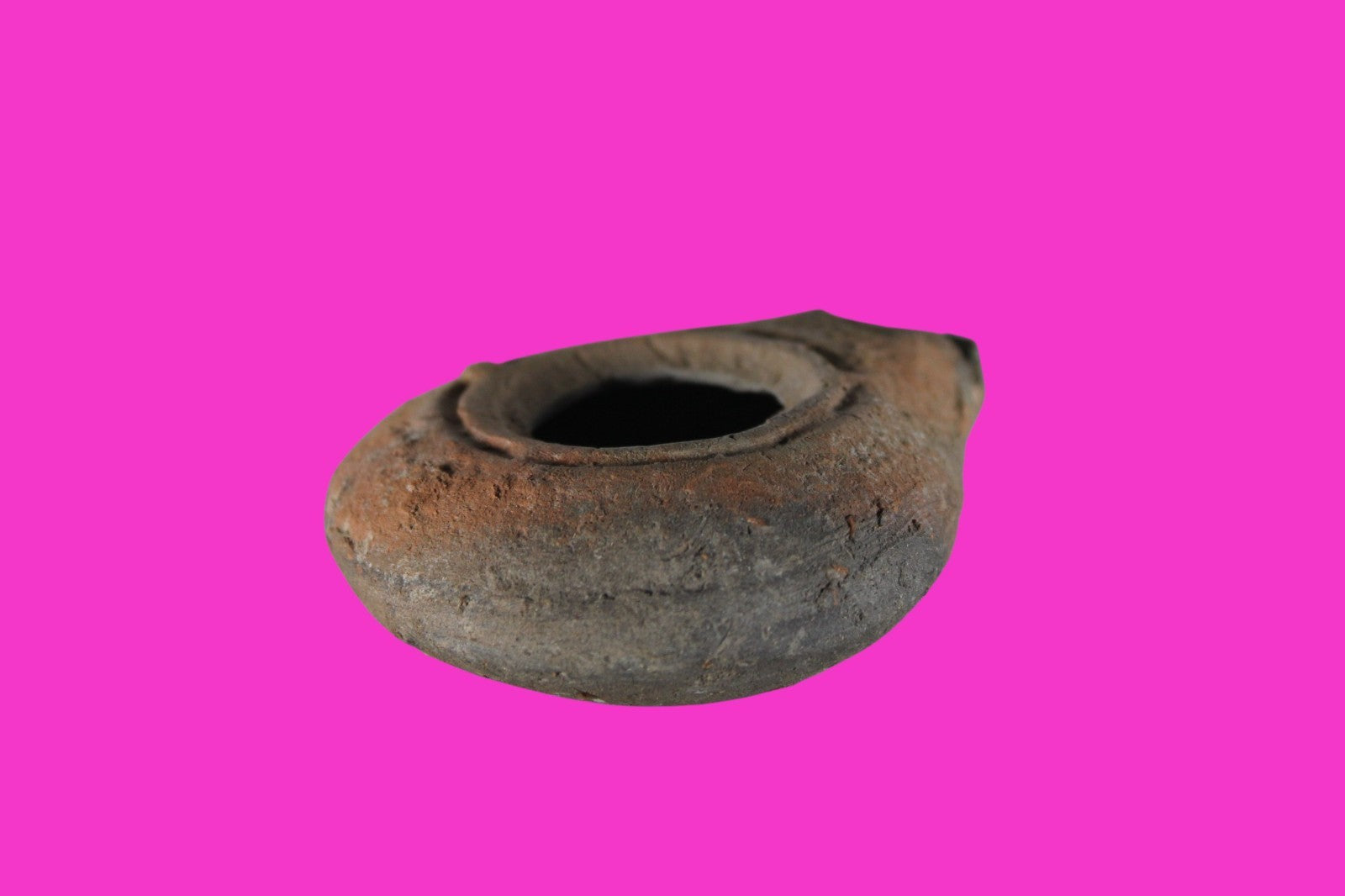 Dimensions: 3 inches long, 2 ¼ inches wide, 1 inch tall, weighs 54 grams. Provenance: Excavated in the aftermath of the 1967 Six Day War in Judea. Acquired by the Hamadian Antiquities Gallery in The Old City of Jerusalem. Export to the United States approved by the Israeli Antiquities Authority in 2025. Acquired by The Artifact City Collection in September 2025. Description: Terracotta oil lamp made from a two-part mold. Oil from animal fat or olives were used with a wick to provide lighting. Oil lamps were mass produced in large quantities throughout the Holy Land and surrounding areas. Their use was significant in both Jewish and early Christian religious ceremonies. They were the equivalent of today’s “light bulbs”.