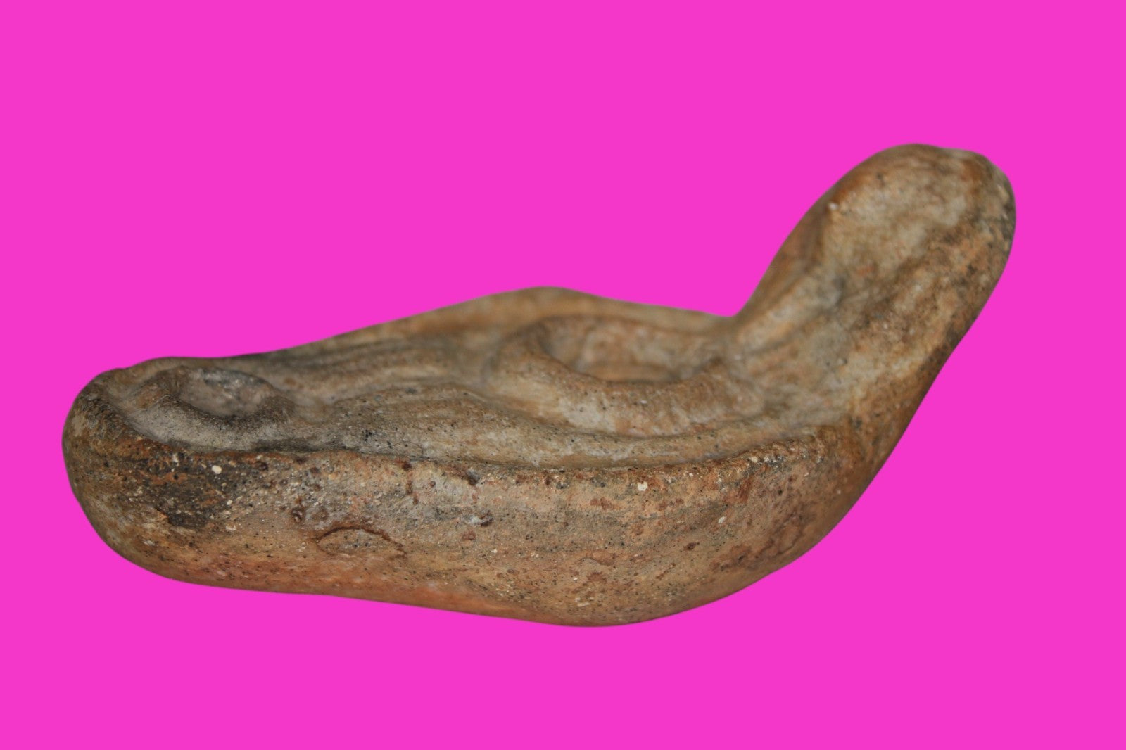 Dimensions: 1 ¾ inches tall, 4 ¼ inches long, 2 ¼ inches wide, weighs 115 grams Provenance: Ex. Private Jerusalem collection, Acquired in the aftermath of the 1967 Six Day War. Acquired by John McIntosh, MSE, MBA, Ancient Artifacts & Treasures, Winter Park, Florida in 2022. Acquired by The Artifact City collection in 2025. Description: Redware oil lamp made from a two part mold. Oil from animal fat or olives were used with a wick to provide lighting. Oil lamps were mass produced in large quantities throughout the Holy Land and surrounding areas. Their use was significant in both Jewish and early Christian religious ceremonies. They were the equivalent of today’s “light bulbs”.