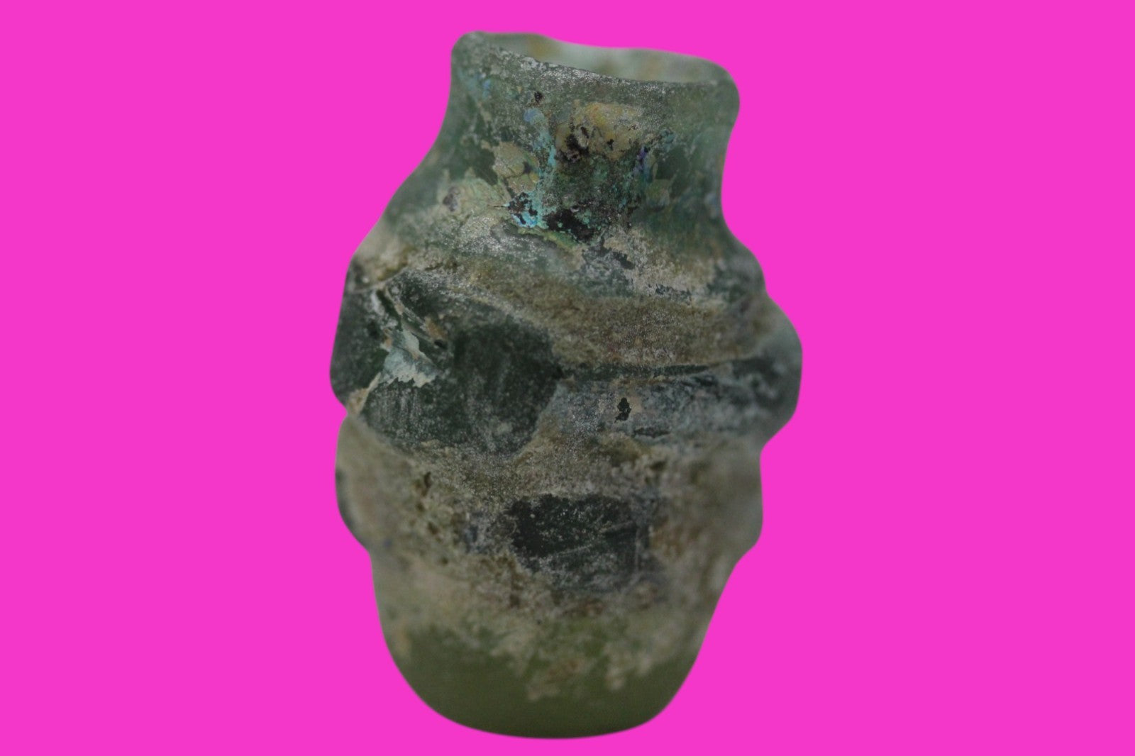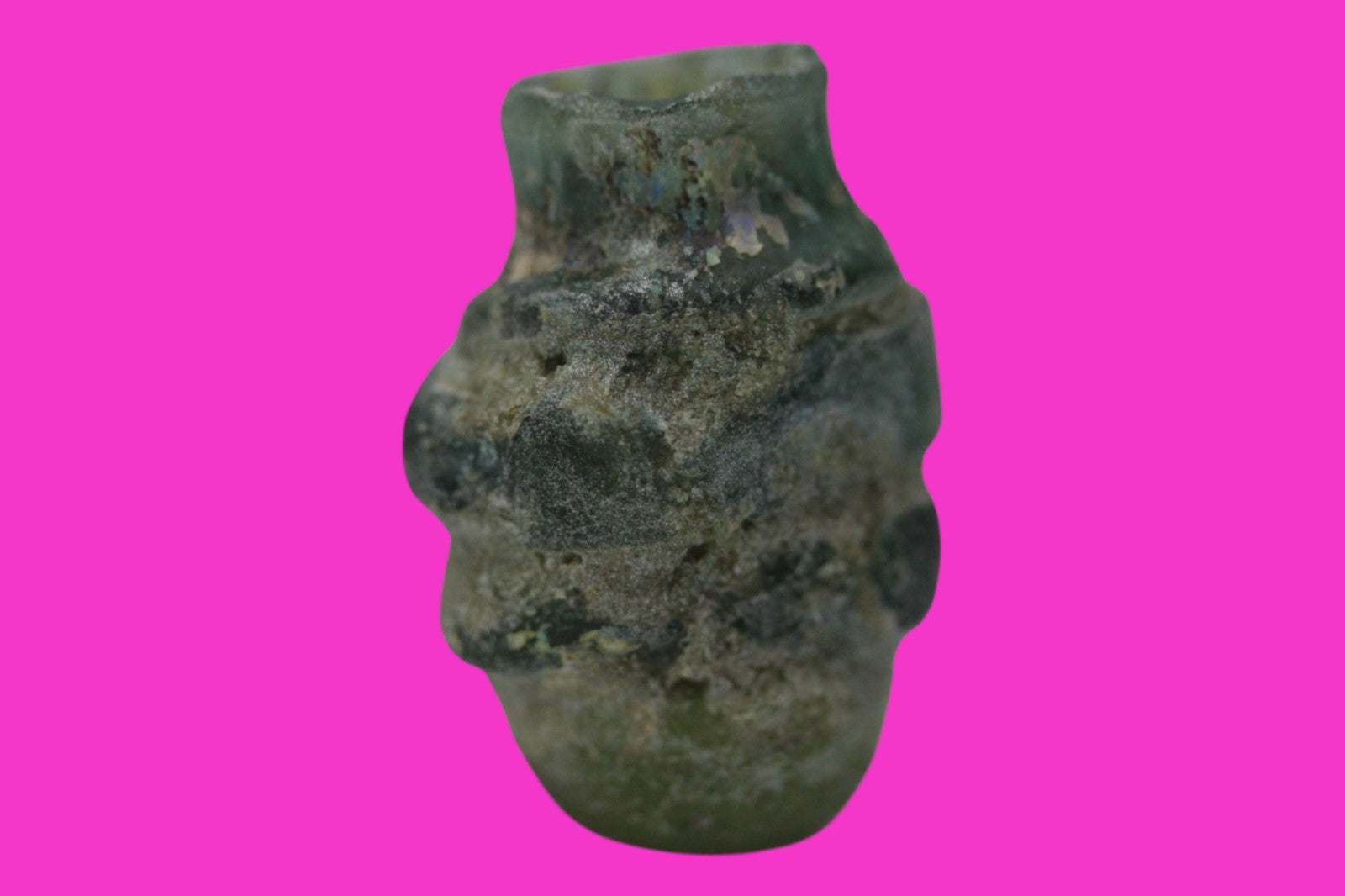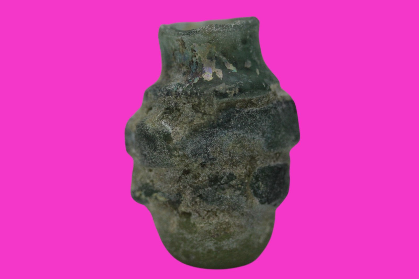 Dimensions: 4 inches tall, 3 ½ inches wide, weighs 74 gramsProvenance: Ex. Private Miami, Florida collection. Acquired in the 1990’s. Acquired by John McIntosh, MSE, MBA, Ancient Artifacts & Treasures, Winter Park, Florida in 2017. Consigned to The Pre Columbian Collection on 7/03/2025.Description: Blue glass bottle. Used to hold perfumes, oils, or unguents for anointing the deceased. Encrustations indicative of several centuries of underground burial. Small rim chips, wear and tear consistent with age and everyday use. No repairs or restorations were found. Intact. Overall Outstanding condition.