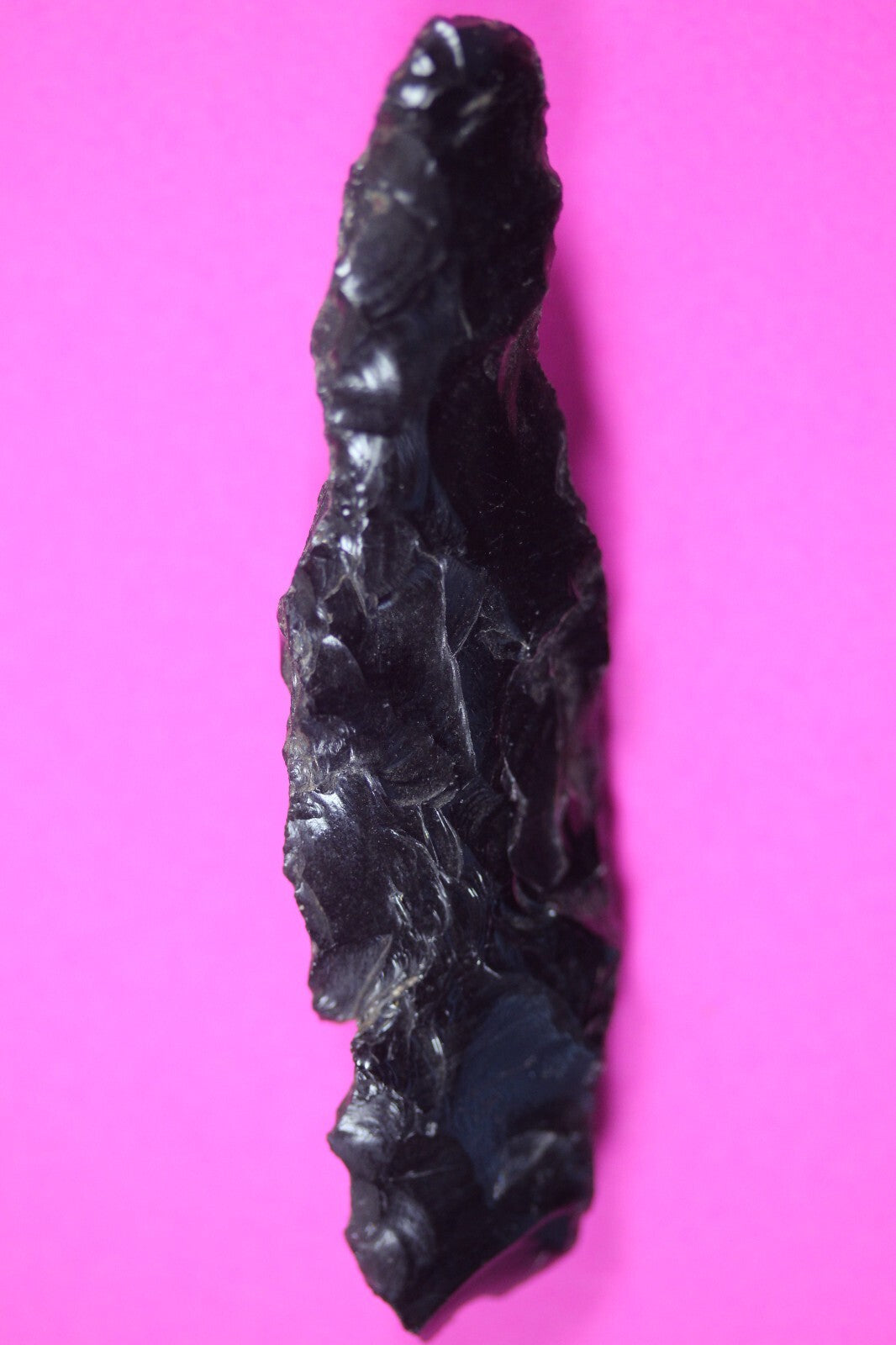 This obsidian arrowhead was excavated from an ancient battleground in Tenochtitlan, Mexico (Mexico City). Provenance: Ex. Borenstein Art Gallery, New Orleans, 1960’s to 1970’s. Ex. Ancient Artifacts & Treasures, Winter Park, FL, acquired in 2004.This arrowhead was used by Montezuma’s Aztec Warriors against Cortez’s Spanish Conquistadors in 1521 AD during the fall of Tenochtitlan. This was the Aztec’s last stand against Cortez.Obsidian arrowheads had no chance against the Conquistadors armor.The Aztecs were annihilated. This battle marked the end of the once mighty Aztec Empire.