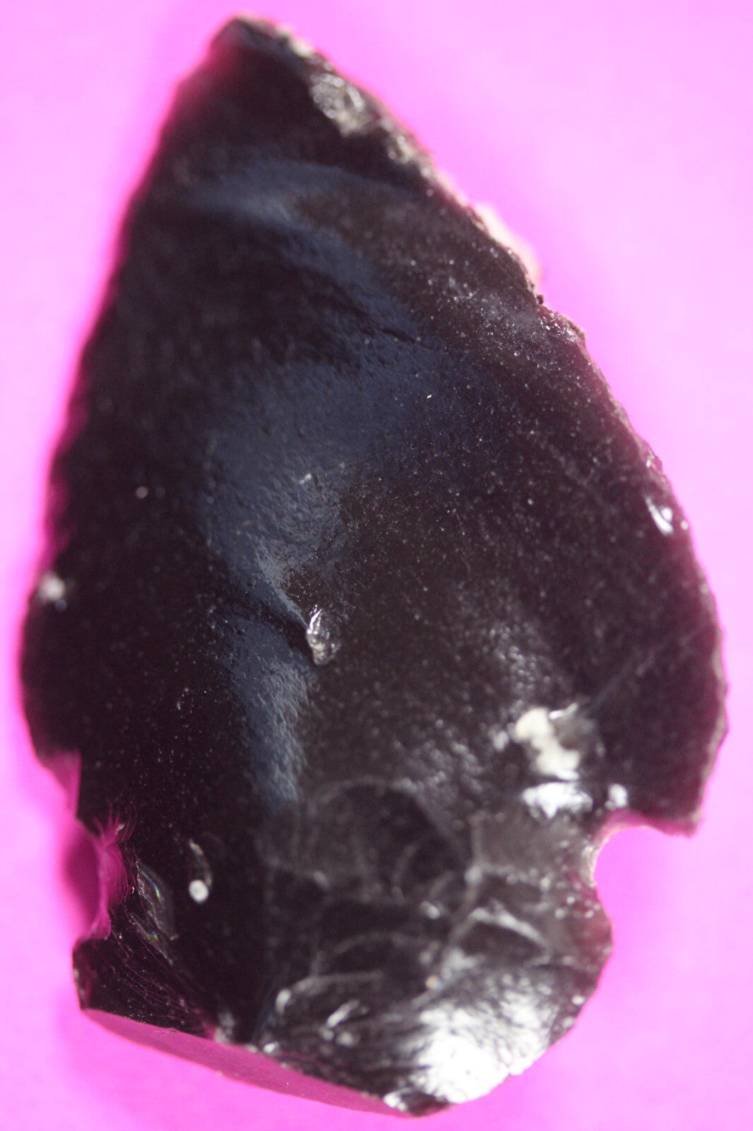 This obsidian arrowhead was excavated from an ancient battleground in Tenochtitlan, Mexico (Mexico City). Provenance: Ex. Borenstein Art Gallery, New Orleans, 1960’s to 1970’s. Ex. Ancient Artifacts & Treasures, Winter Park, FL, acquired in 2004.This arrowhead was used by Montezuma’s Aztec Warriors against Cortez’s Spanish Conquistadors in 1521 AD during the fall of Tenochtitlan. This was the Aztec’s last stand against Cortez.Obsidian arrowheads had no chance against the Conquistadors armor.The Aztecs were annihilated. This battle marked the end of the once mighty Aztec Empire.