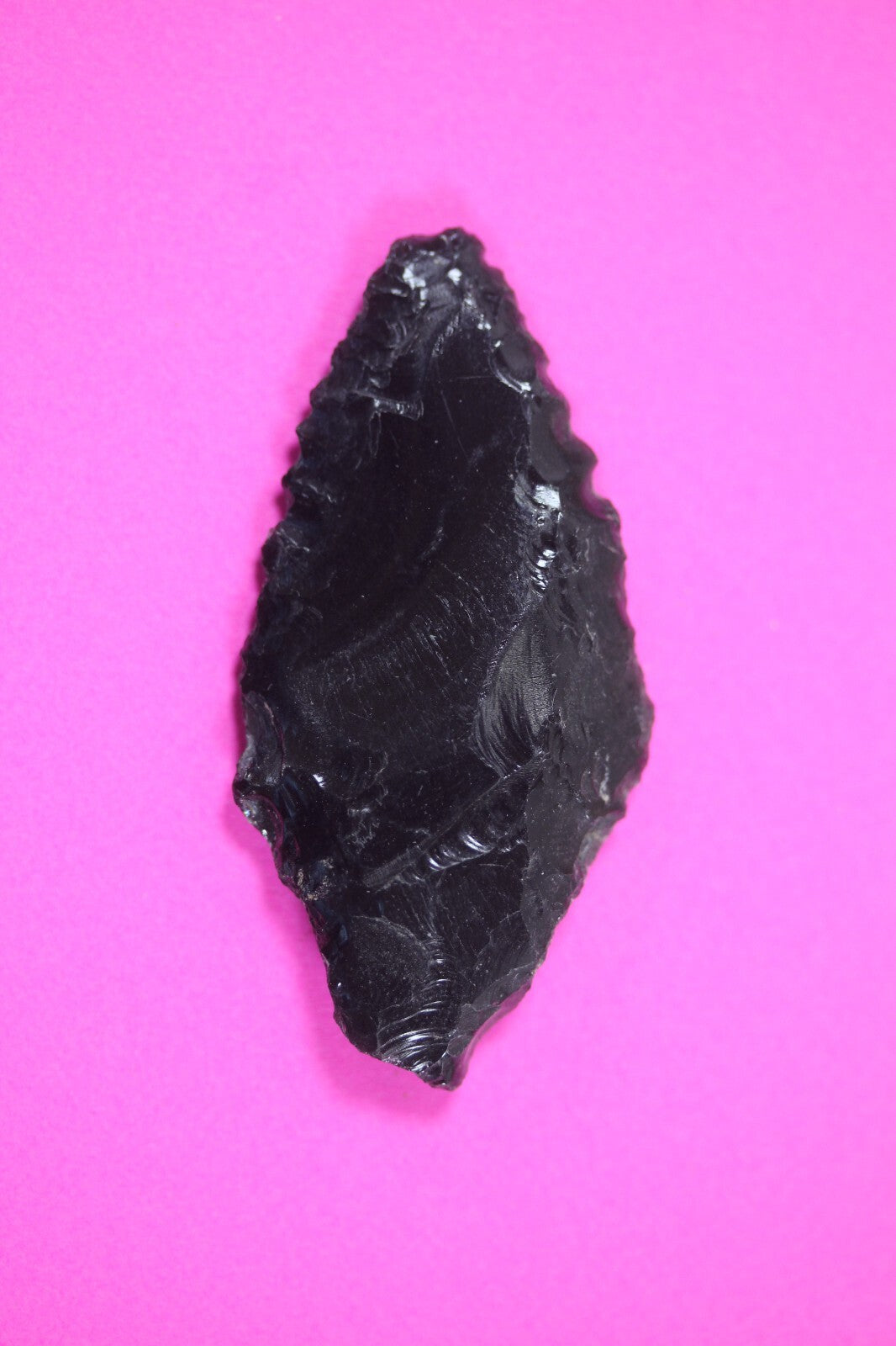 This obsidian arrowhead was excavated from an ancient battleground in Tenochtitlan, Mexico (Mexico City). Provenance: Ex. Borenstein Art Gallery, New Orleans, 1960’s to 1970’s. Ex. Ancient Artifacts & Treasures, Winter Park, FL, acquired in 2004.This arrowhead was used by Montezuma’s Aztec Warriors against Cortez’s Spanish Conquistadors in 1521 AD during the fall of Tenochtitlan. This was the Aztec’s last stand against Cortez.Obsidian arrowheads had no chance against the Conquistadors armor.The Aztecs were annihilated. This battle marked the end of the once mighty Aztec Empire.