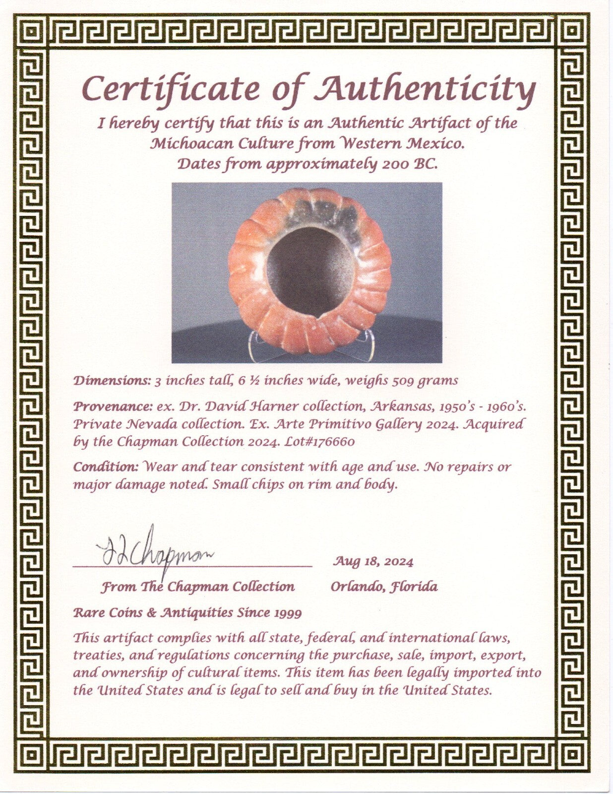 Pre Columbian Authentic Artifact Gadrooned Bowl Michoacan Mexico 200 BC COA T46