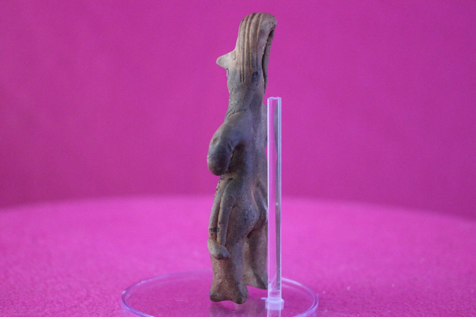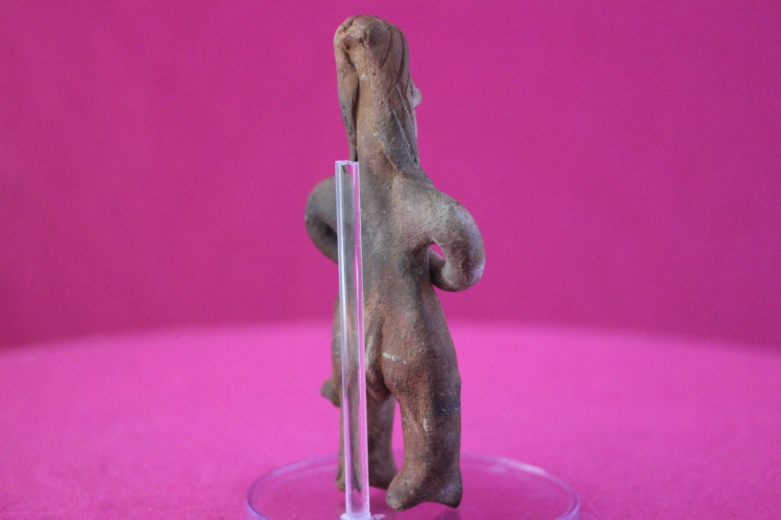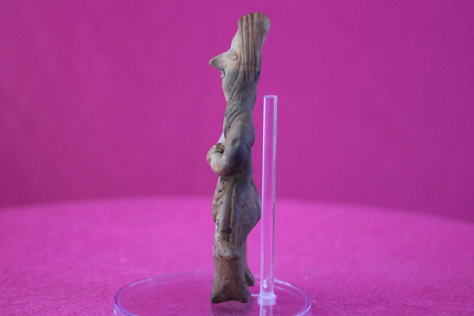 Dimensions: 5 ¼ inches tall, 2 ¼ inches wide, weighs 98 grams.Description: Female “Pretty Lady” tomb figure wearing a loin cloth with a tassel. Arms folded over chest. No repairs or restorations. Totally intact. Abrasions, wear consistent with age. Overall outstanding condition.Manganese Dioxide Reactivity Test Results: A solution of laboratory grade 40% hydrogen peroxide was applied to multiple manganese blooms that resulted in a strong chemical reaction indicating approximately 2000 years of underground burial.Provenance: Ex. Arte Primitivo Fine Art Gallery, February 2025. Ex. Private Nevada collection. Ex. Dr. David Harner collection, Arkansas, 1950’s -1960’s, acquired mid 1960’s to mid 1990’s.