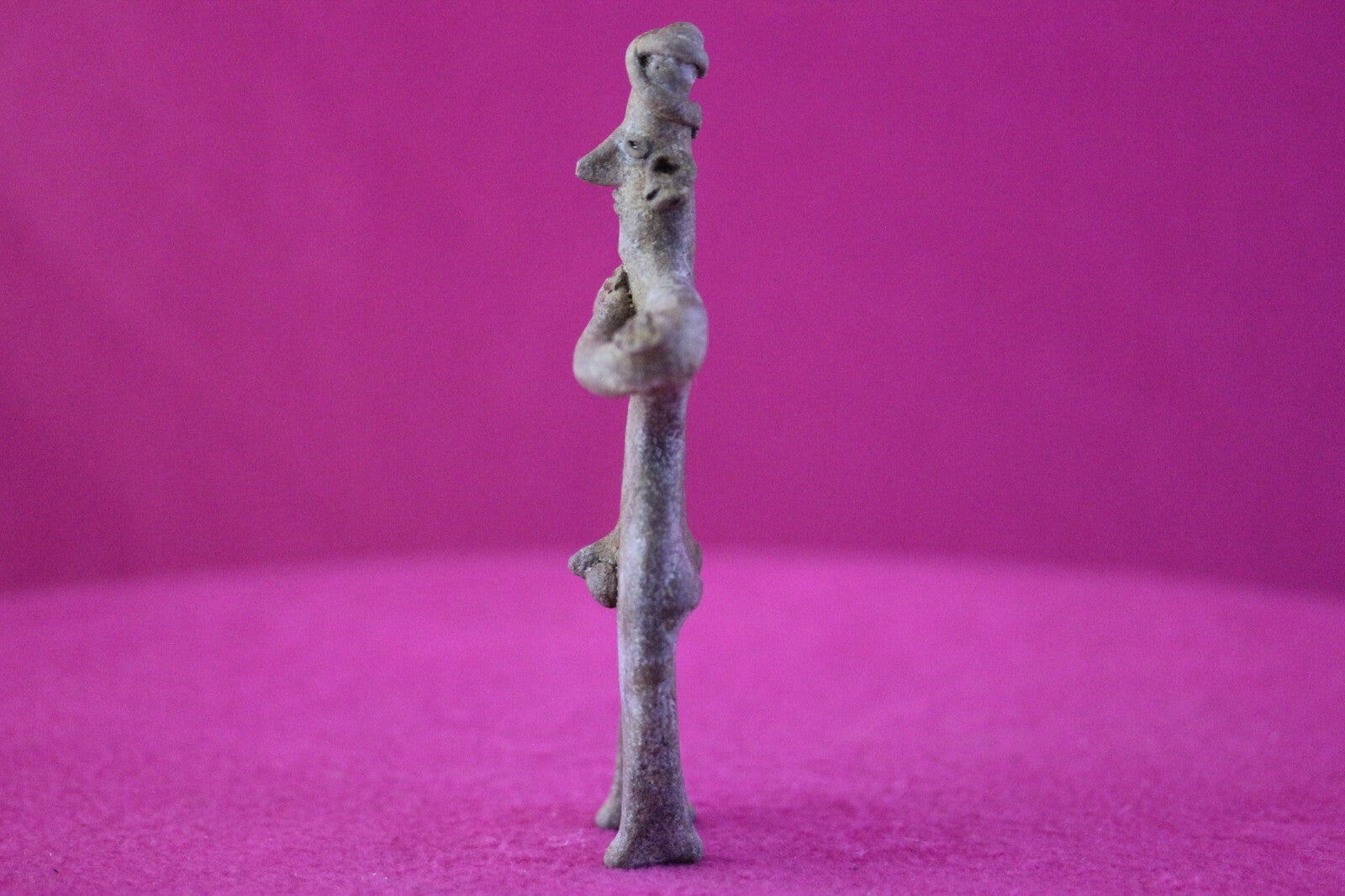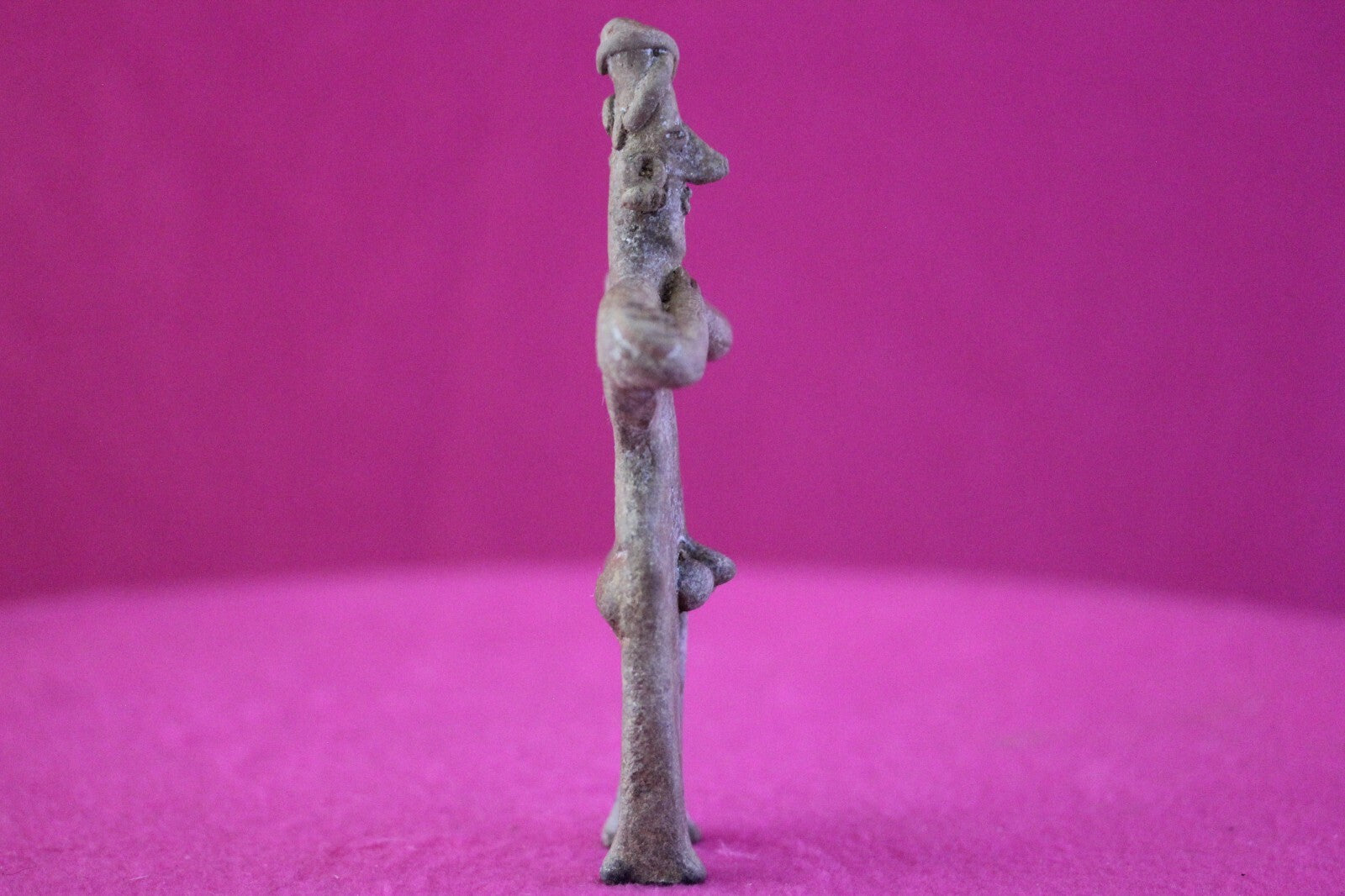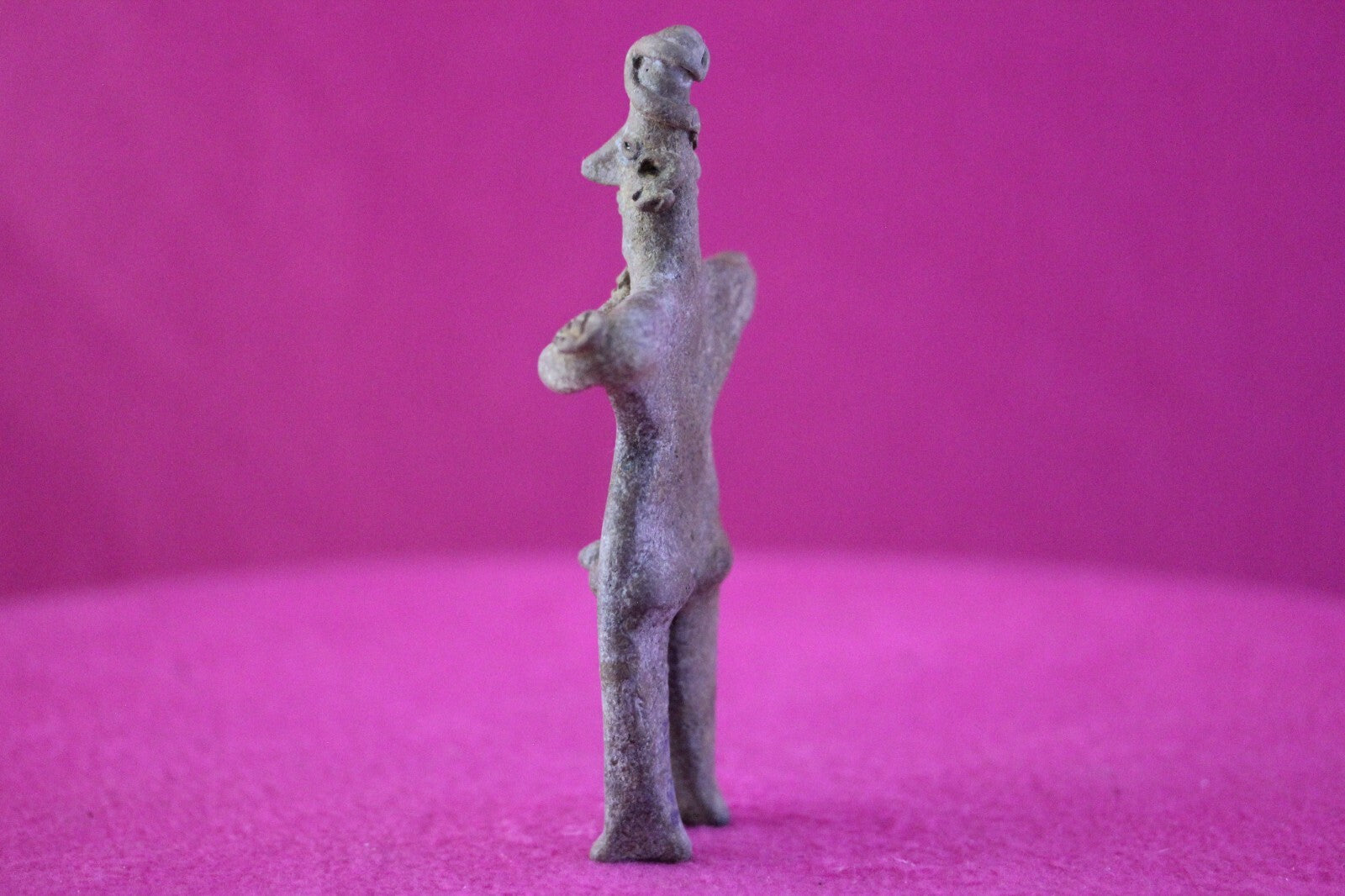Dimensions: 5 ¼ inches tall, 3 inches wide, weighs 81 grams.Description: Male tomb figure with large earspools, head wrap, elbow nodes. No repairs or restorations noted. Intact. Overall outstanding condition.Provenance: Ex. Arte Primitivo Fine Art Gallery, February 2025. Ex. Private Nevada collection. Ex. Dr. David Harner collection, Arkansas, 1950’s -1960’s, acquired mid 1960’s to mid 1990’s.