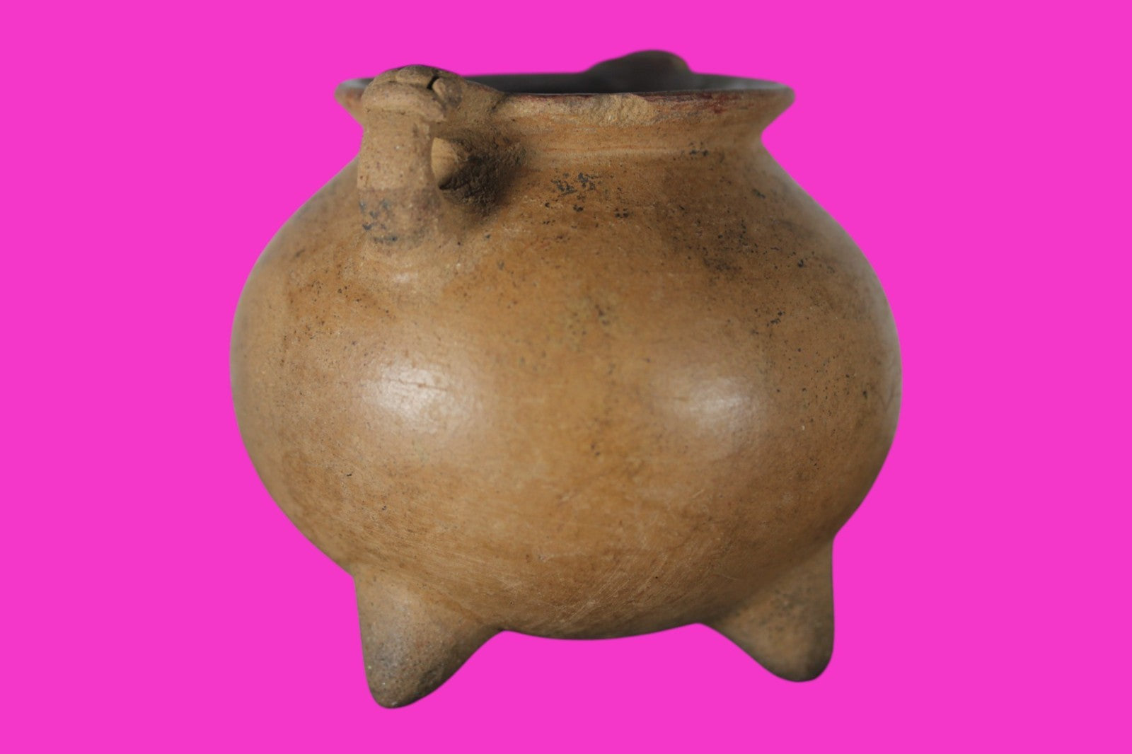 Dimensions: 4 ½ inches tall, 5 ¾ inches wide, weighs 437 gramsProvenance: Ex. Private Miami, Florida collection. Acquired in the 1970’s. Acquired by John McIntosh, MSE, MBA, Ancient Artifacts & Treasures, Winter Park, Florida in 2021. Consigned to The Pre Columbian Collection on 7/03/2025.Description: Tan colored tripod bowl with small applied decorations on two loop handles. One lower decoration lost in antiquity. Small prodding hole from the excavation process. Archaeological identification number written on the bottom. Overall Good Condition. Small rim chips, wear and tear consistent with age and everyday use. Intact. No repairs or restorations were found. Manganese Dioxide Reactivity Test Results: A solution of laboratory grade 40% hydrogen peroxide was applied to multiple manganese blooms that resulted in a strong chemical reaction indicating approximately 1500 years of underground burial.