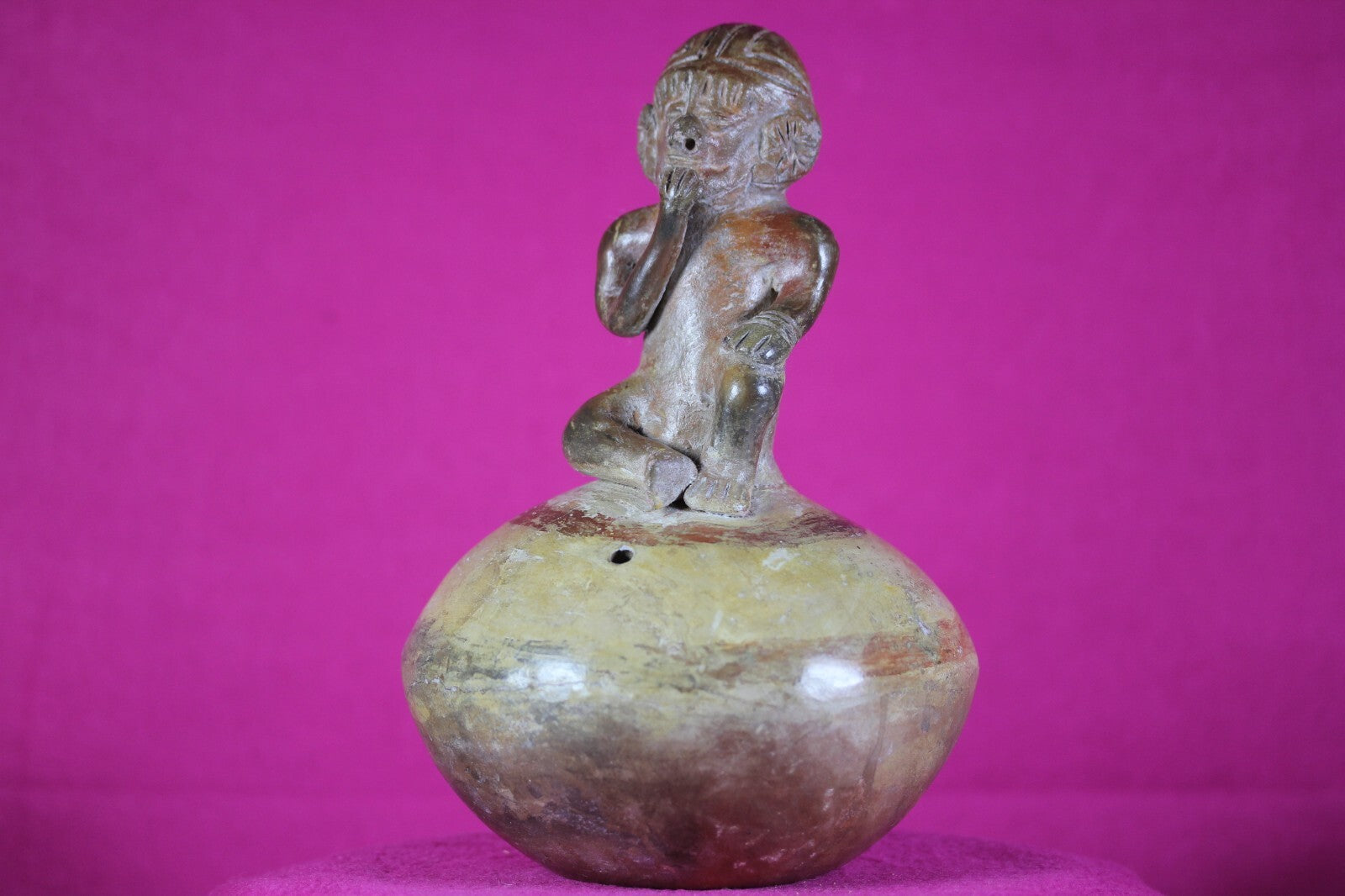 Authentic Pre Columbian Artifact Vicus Figure Jar Pottery 250 BC-600 AD COA J15