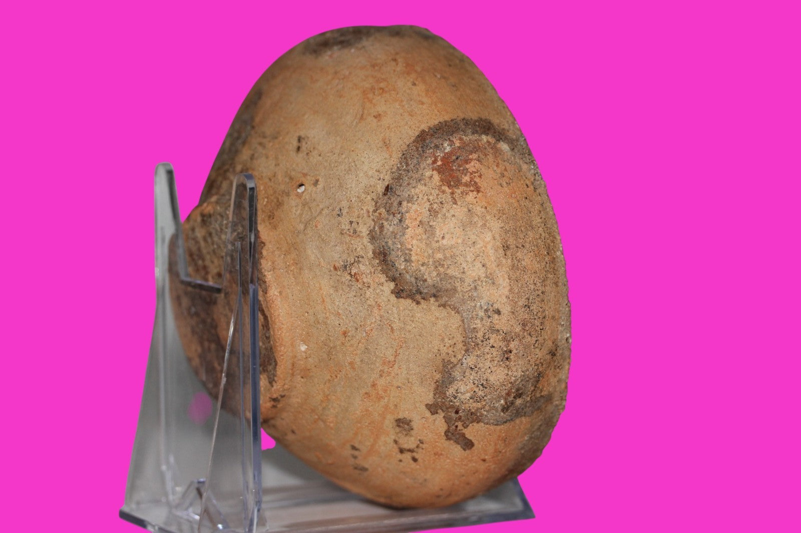 Dimensions: 2 inches tall, 5 ¼ inches wide, weighs 284 grams. Provenance: Ex. Private Jerusalem collection, Acquired in the aftermath of the 1967 Six Day War. Acquired by John McIntosh, MSE, MBA, Ancient Artifacts & Treasures, Winter Park, Florida in 2022. Acquired by The Artifact City collection in 2025. Description: Redware pedestal bowl. Mineral deposits and plant root marks indicative of approximately 4000 years of underground burial. Small rim chips and surface loss. No repairs or restorations found. Overall Excellent condition. Genesis 17:7-8 “I will always keep the promise I have made to you and your descendants, because I am your God and their God. I will give you and them the land in which you are now a foreigner. I will give the whole land of Canaan to your family forever, and I will be their God. “