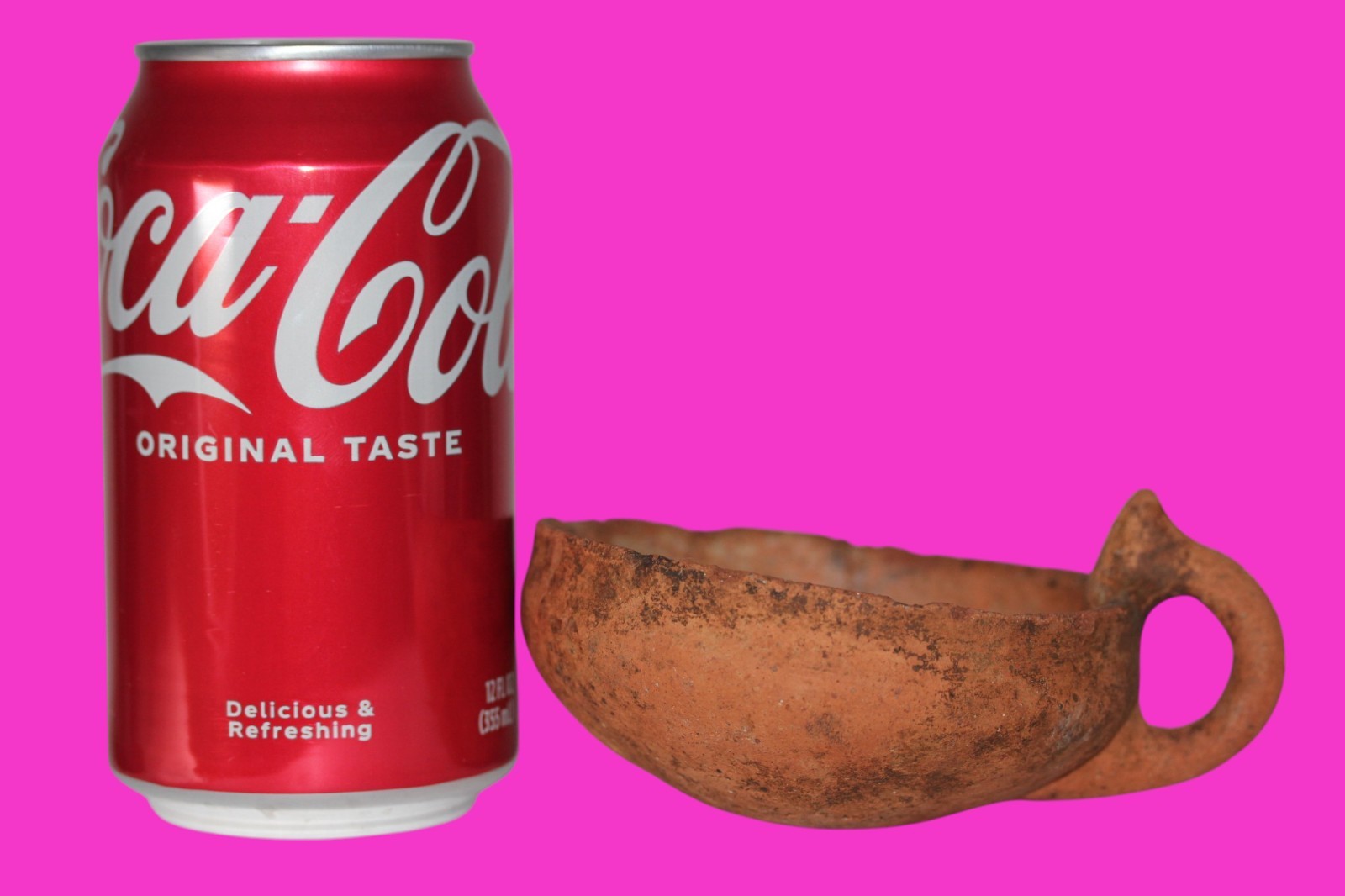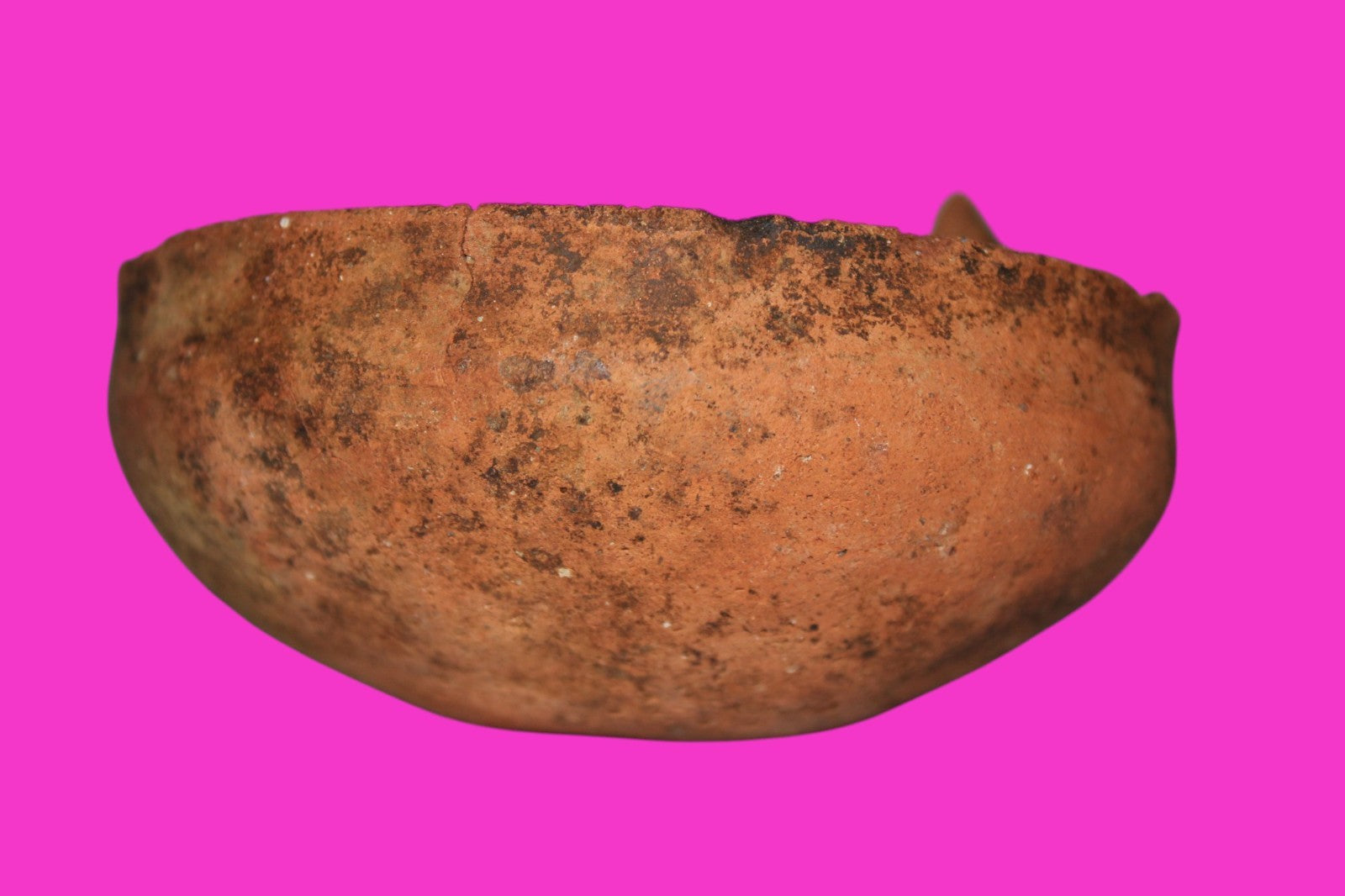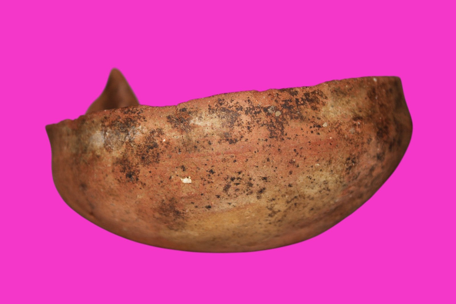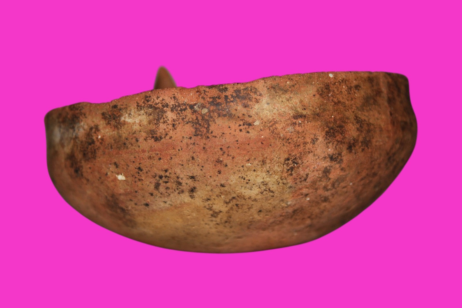 Dimensions: 2 inches tall, 4 ¾ inches wide, weighs 142 grams. Provenance: Ex. Private Jerusalem collection, Acquired in the aftermath of the 1967 Six Day War. Acquired by John McIntosh, MSE, MBA, Ancient Artifacts & Treasures, Winter Park, Florida in 2022. Acquired by The Artifact City collection in 2025. Description: Redware horned handle cup. Mineral deposits indicative of approximately 4000 years of underground burial. Small rim chips, stable age cracks, surface loss. No repairs or restorations found. Outstanding condition. Genesis 17:7-8 “I will always keep the promise I have made to you and your descendants, because I am your God and their God. I will give you and them the land in which you are now a foreigner. I will give the whole land of Canaan to your family forever, and I will be their God. “
