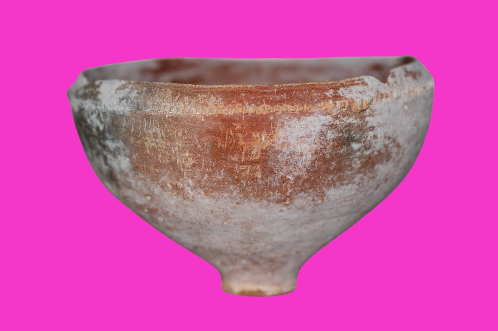 Dimensions: 3 ¼ inches tall, 5 ¼ inches wide, weighs 307 grams Provenance: Ex. Private Jerusalem collection, Acquired in the aftermath of the 1967 Six Day War. Acquired by John McIntosh, MSE, MBA, Ancient Artifacts & Treasures, Winter Park, Florida in 2022. Acquired by The Artifact City collection in 2025. Description: Redware potter’s wheel formed pedestal bowl.. Mineral deposits indicative of approximately 2000 years of underground burial. Small rim chips and some surface loss. No repairs or restorations found. Overall Good condition. John 3:16 "For God so loved the world, that he gave his only Son, that whoever believes in him should not perish but have eternal life".