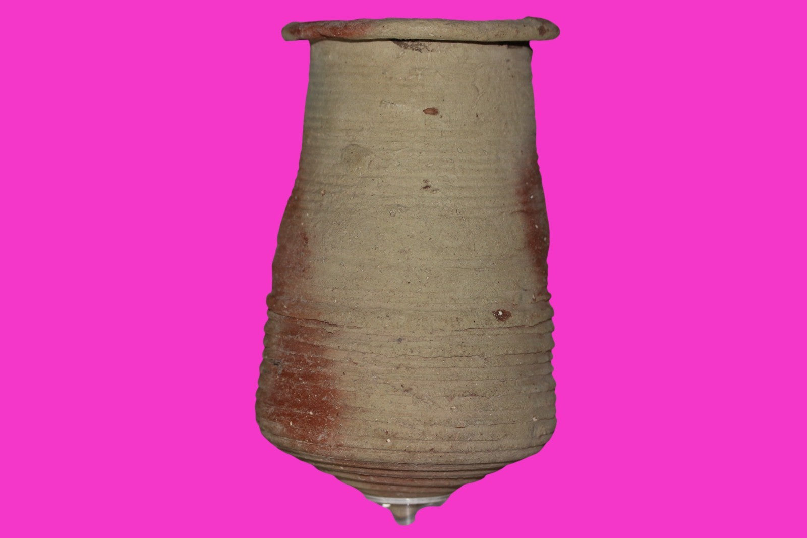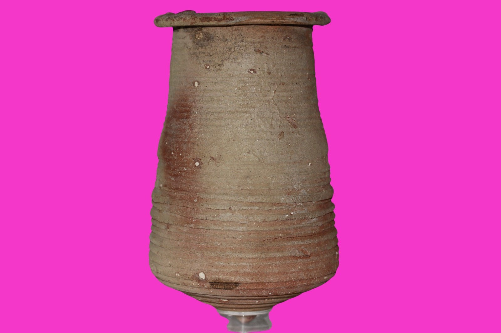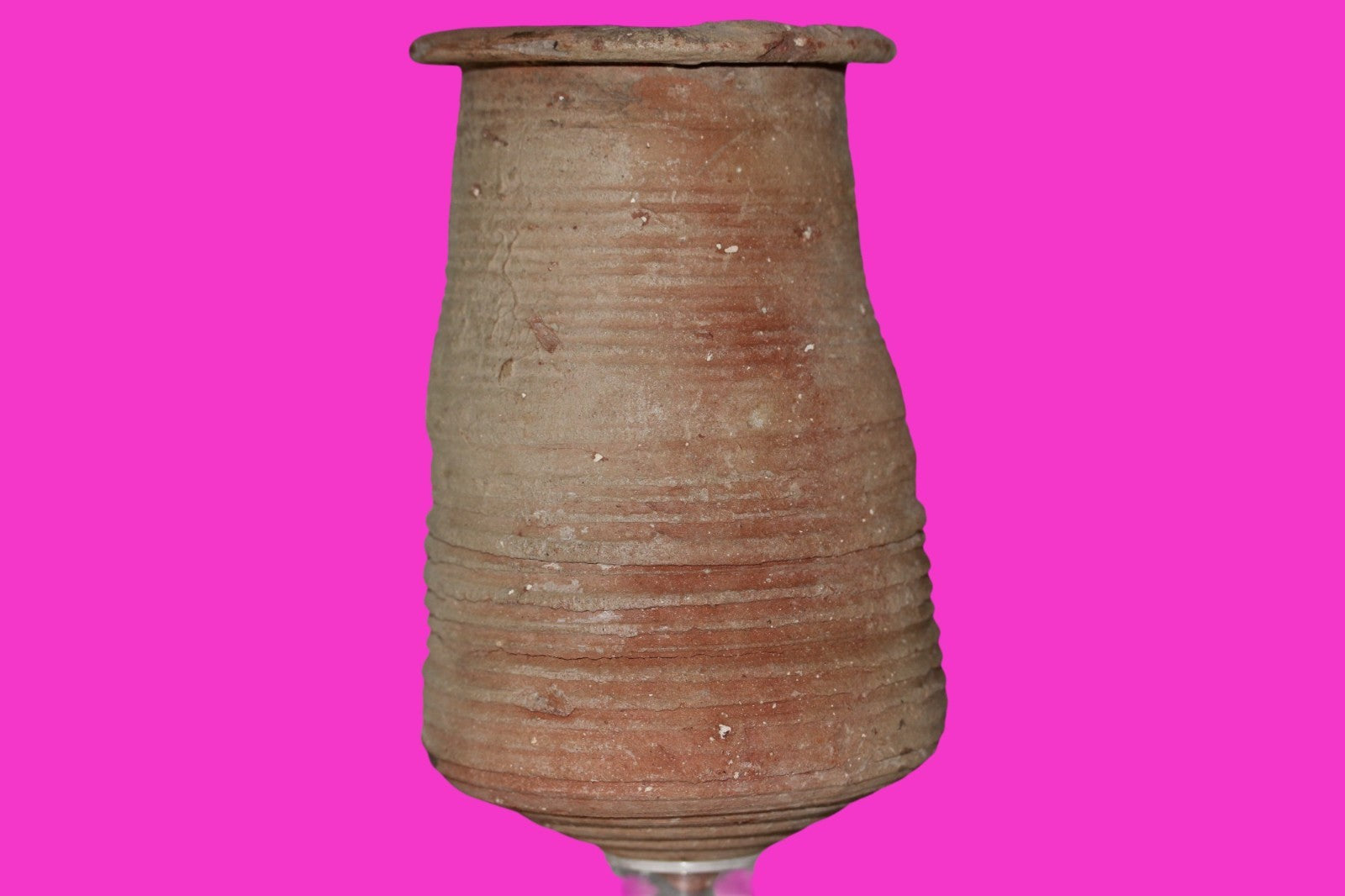 Dimensions: 6 inches tall, 4 inches wide, weighs 464 grams Provenance: Ex. Private Jerusalem collection, Acquired in the aftermath of the 1967 Six Day War. Acquired by John McIntosh, MSE, MBA, Ancient Artifacts & Treasures, Winter Park, Florida in 2022. Acquired by The Artifact City collection in 2025. Description: Redware potter’s wheel formed beaker painted cream. Mineral deposits indicative of approximately 1500 years of underground burial. Small rim chips and some paint loss. No repairs or restorations found. Overall Excellent condition. Between 400 and 600 AD, the Byzantine Empire controlled the Holy Land, transforming it into a major Christian center through the construction of numerous churches, monasteries, and pilgrimage sites.