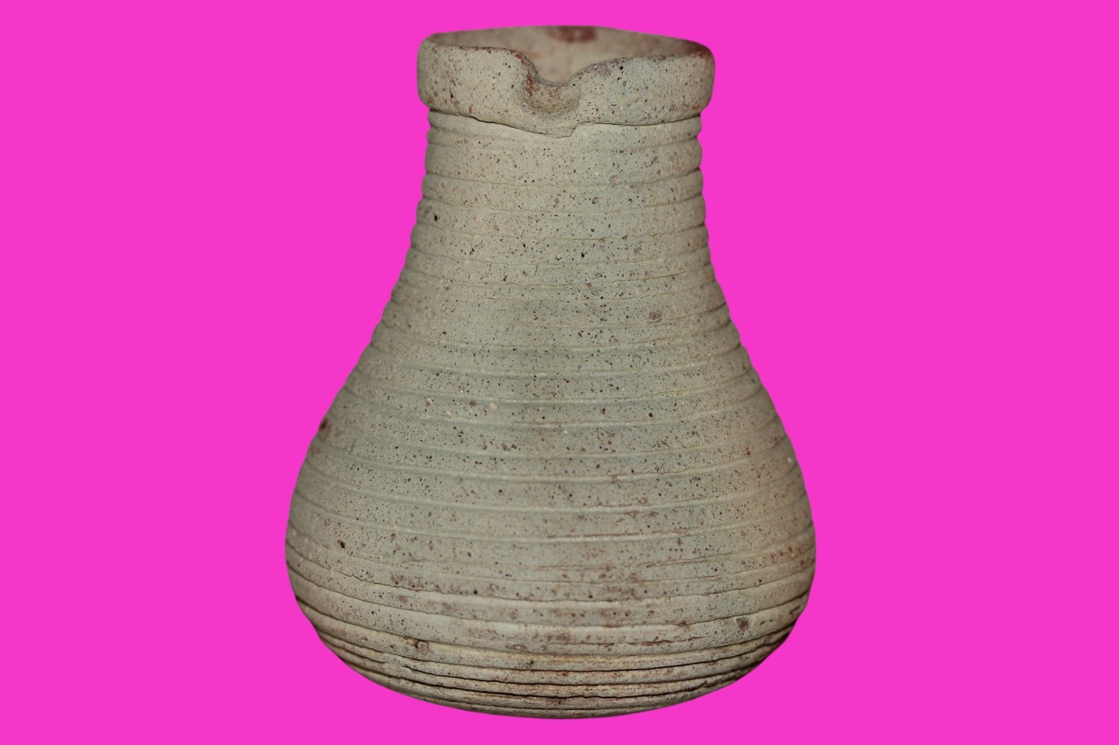 Dimensions: 4 ¼ inches tall, 3 ½ inches wide, weighs 267 grams Provenance: Ex. Private Jerusalem collection, Acquired in the aftermath of the 1967 Six Day War. Acquired by John McIntosh, MSE, MBA, Ancient Artifacts & Treasures, Winter Park, Florida in 2022. Acquired by The Artifact City collection in 2025. Description: Museum quality redware ribbed juglet with most of it’s cream paint remaining. Mineral deposits indicative of approximately 2000 years of underground burial. Minimal wear from use. No repairs or restorations found. Overall Outstanding condition. John 3:16 "For God so loved the world, that he gave his only Son, that whoever believes in him should not perish but have eternal life".
