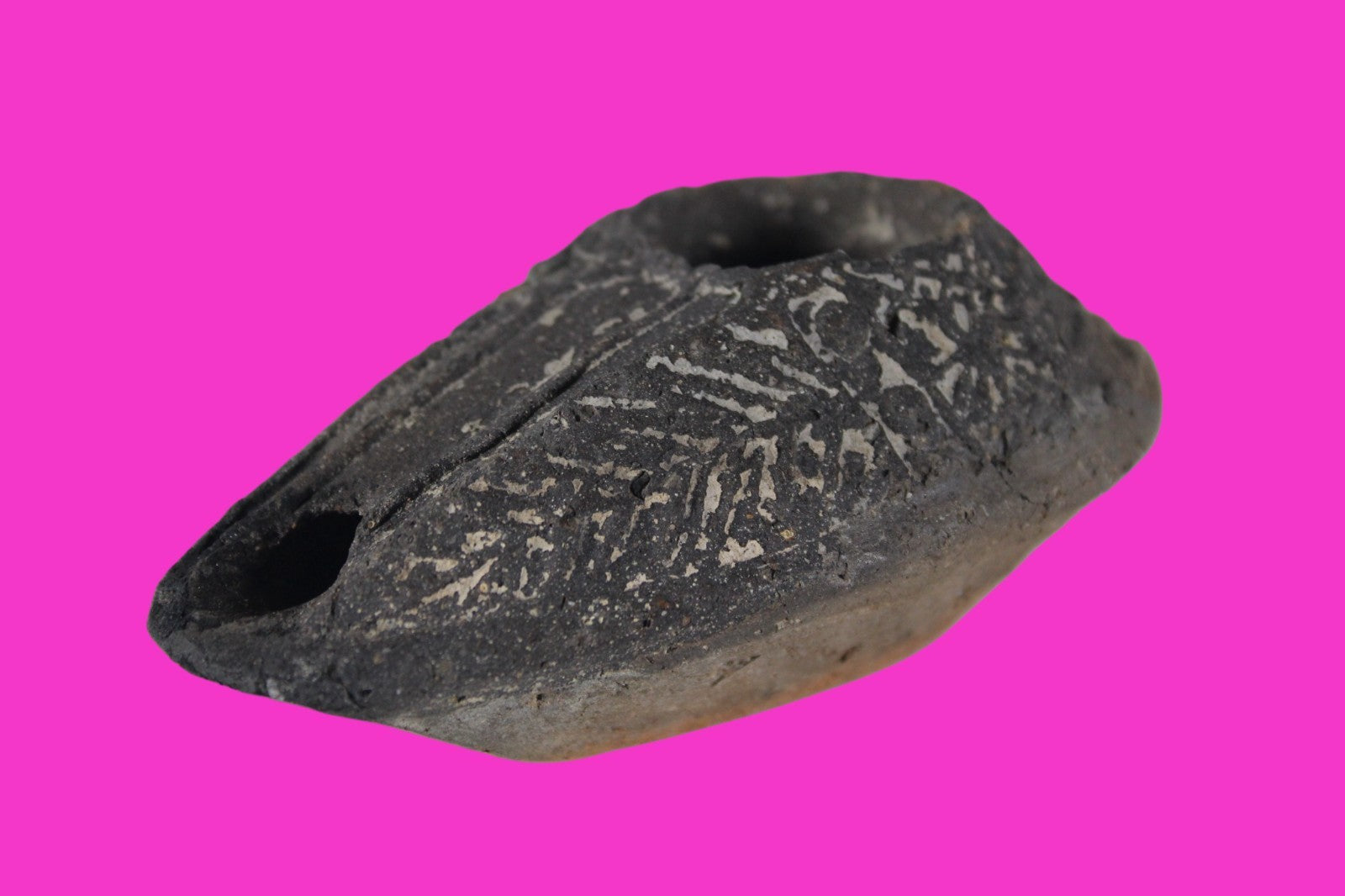Dimensions: 3 ¾ inches long, 2 ¼ inches wide, 1 ½ inches tall, weighs 88 grams. Provenance: Excavated in Judea in the late 1990’s. Ex Private Tel Aviv Collection. Acquired by the Hamadian Antiquities Gallery in The Old City of Jerusalem. Export to the United States approved by the Israeli Antiquities Authority in 2025. Acquired by The Artifact City Collection in September 2025. Description: Terracotta oil lamp made from a two-part mold. Oil from animal fat or olives was used with a wick to provide lighting. Oil lamps were mass produced in large quantities throughout the Holy Land and surrounding areas. Their use was significant in both Jewish and early Christian religious ceremonies. They were the equivalent of today’s “light bulbs”.