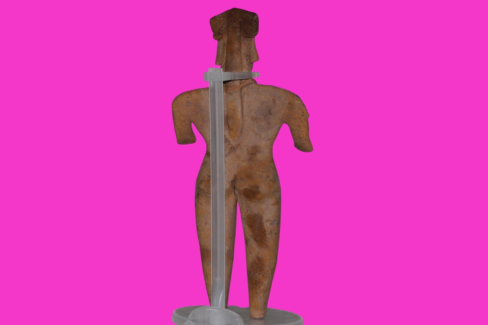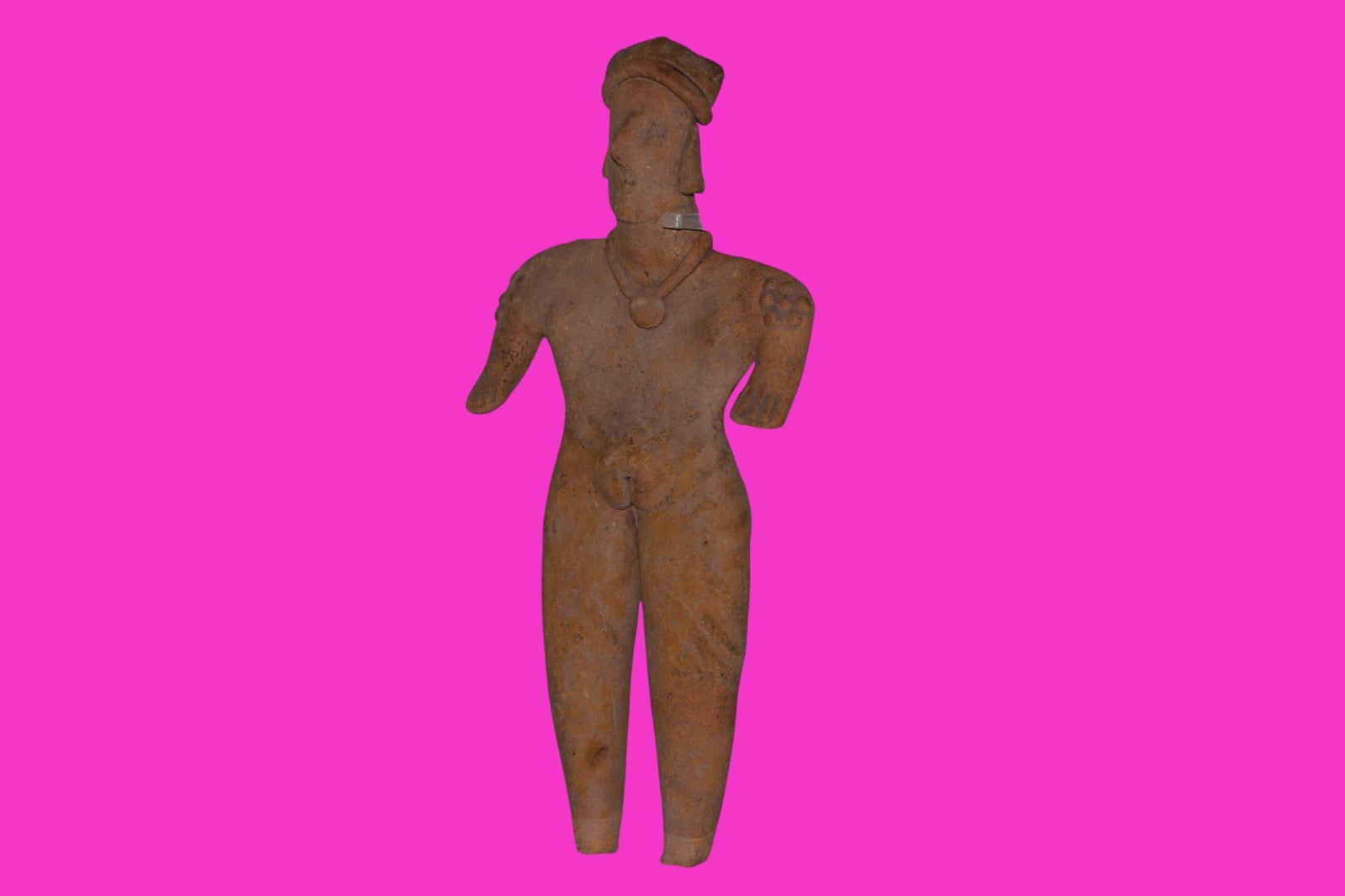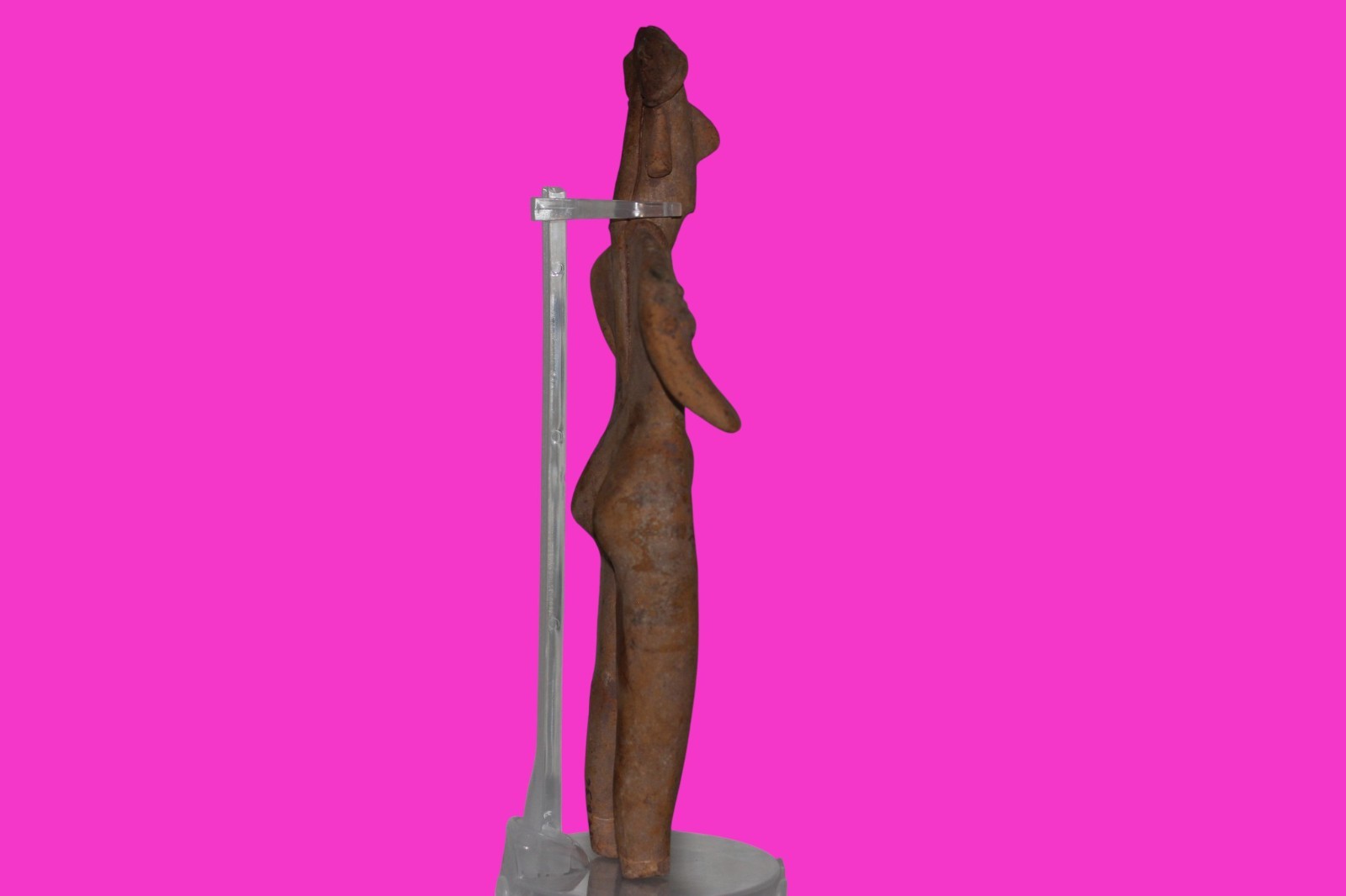 Dimensions: 8 ½ inches tall, 4 inches wide, weighs 307 grams.History: The deceased were lowered tied to boards through long shafts into tombs where workers arranged the bodies in their final resting places, often alongside previously interred family members. Tomb figures were placed with the fallen to provide companionship, guidance, and protection in the afterlife. Description: Tall female Shaman figure wearing headgear with 14 shoulder nodes. Professionally repaired and restored. Overall Outstanding condition. Manganese Dioxide Reactivity Test Results: 40% hydrogen peroxide was applied to multiple manganese blooms that resulted in a chemical reaction confirming approximately 2000 years of underground burial. Provenance: Ex. Private Nevada collection. Ex. Dr. David Harner collection, Arkansas, 1950’s -1960’s.Ex. Arte Primitivo Fine Art Gallery, February 2025. Acquired by The Artifact City Collection in 2025.