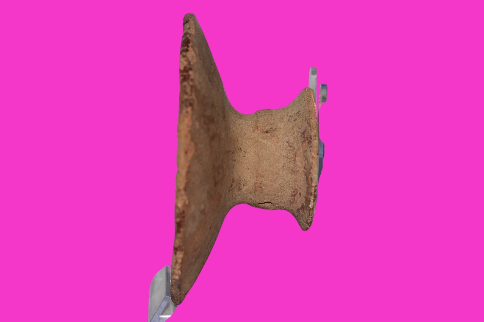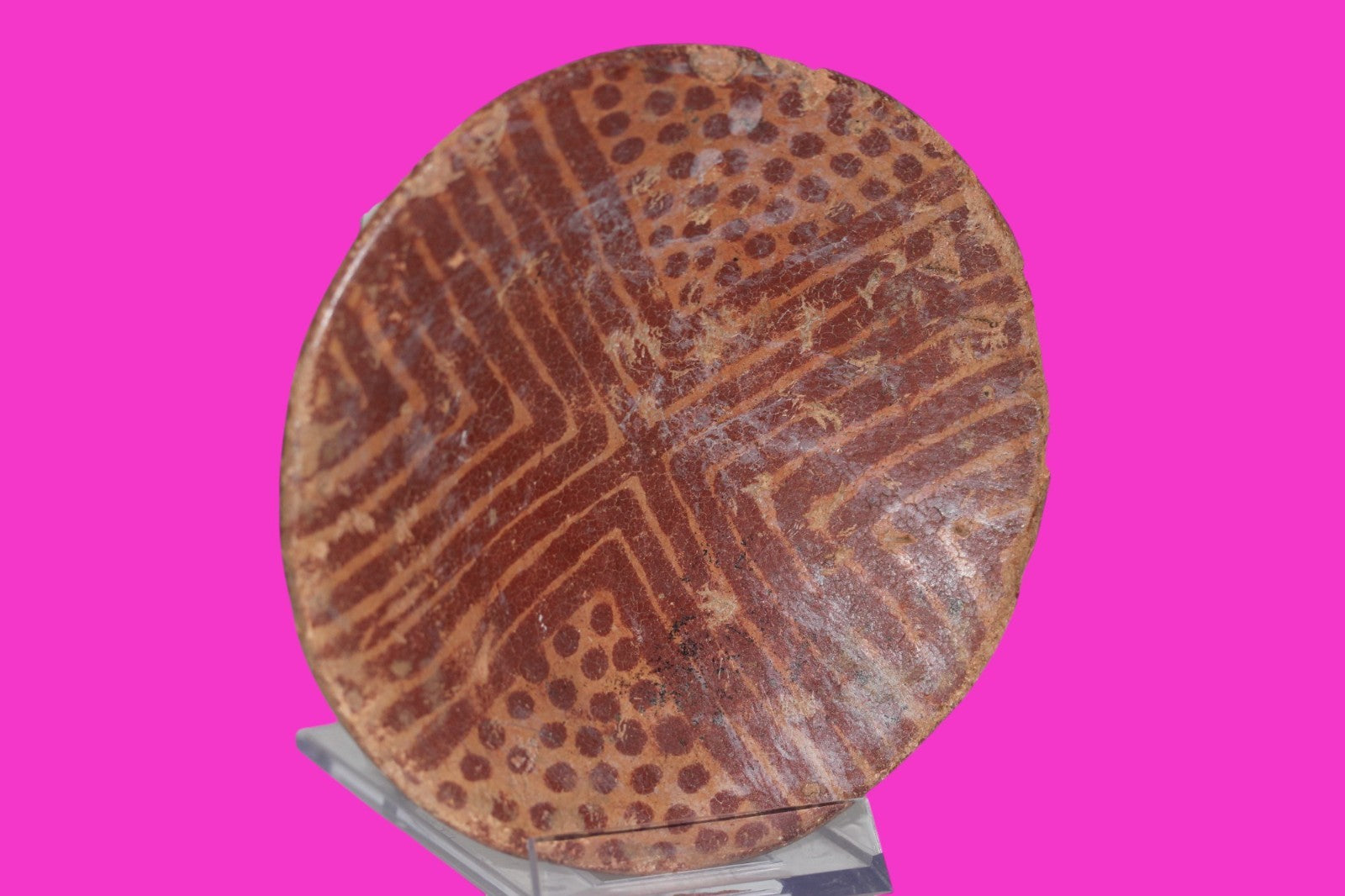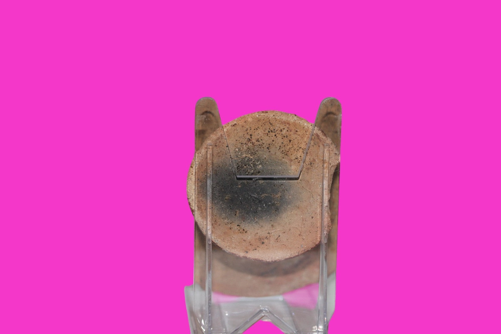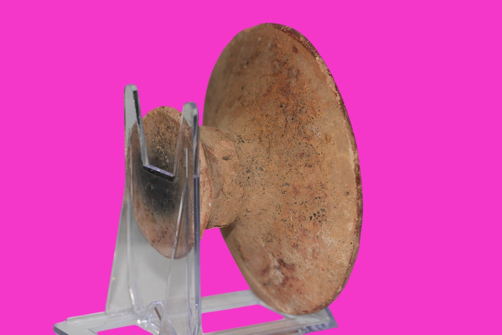 Dimensions: 2 inches tall, 5 ¼ inches wide, weighs 223 grams. Description: Small pedestal bowl decorated in red paint with geometric lines and dots. 1 ½ piece of the base chipped off. Multiple ancient flakes of the rim. Otherwise intact. No repairs or restorations found. Abrasions and wear consistent with age. Overall good condition. Manganese Dioxide Reactivity Test Results: A solution of laboratory grade 40% hydrogen peroxide was applied to multiple manganese blooms that resulted in a strong chemical reaction indicating approximately 1000 years of underground burial. Provenance: Ex. Private Chicago collection, acquired in the 1970’s. Acquired by John McIntosh of Ancient Artifacts & Treasures, Winter Park, Florida in 2022. Assigned to The Artifact City collection in 2025.