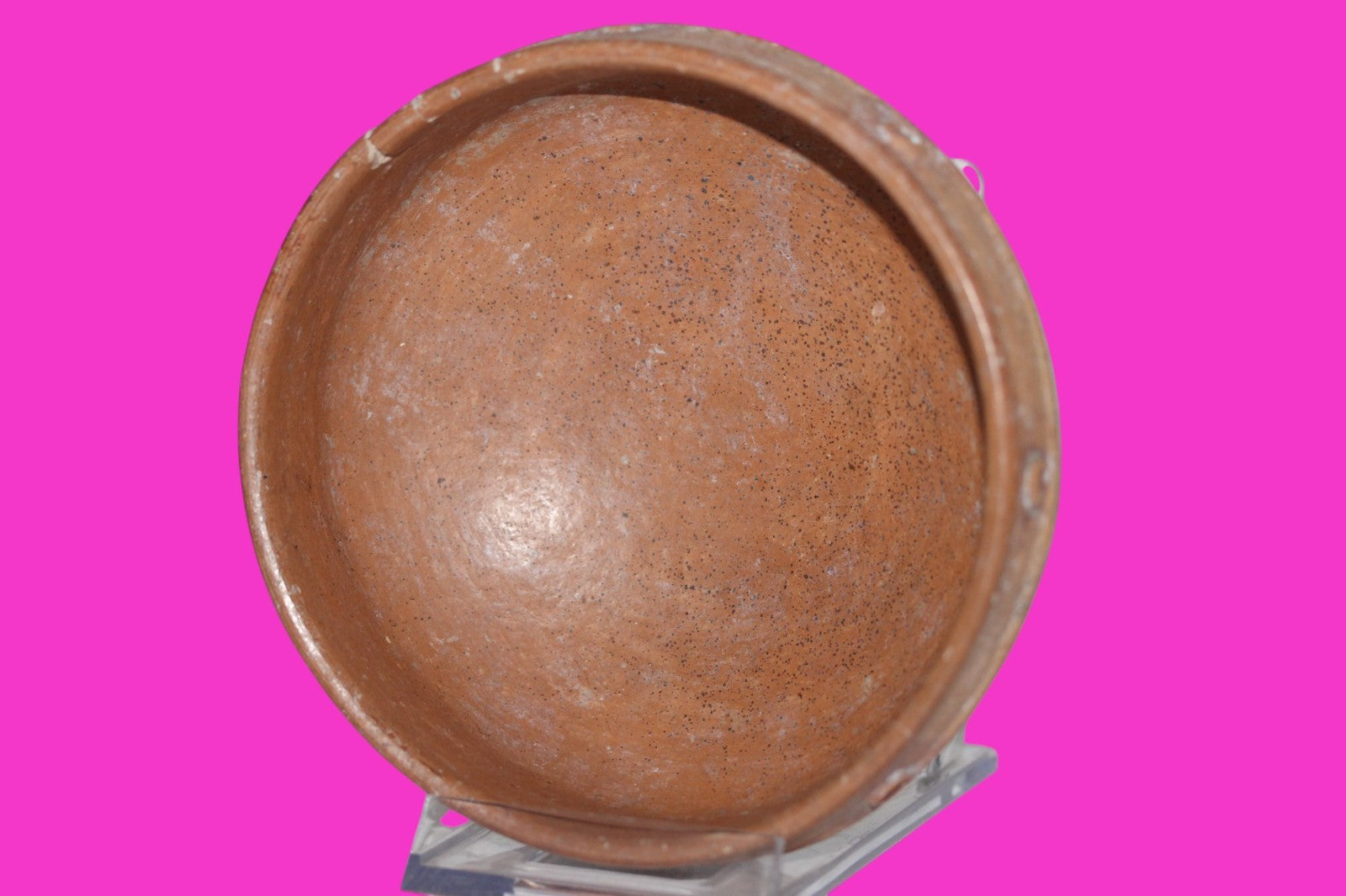 Dimensions: 3 inches tall, 5 inches wide, weighs 334 grams. Description: Redware pedestal bowl with applied decorations around the rim. Rim painted cream. Small rim chip repaired, otherwise intact. Plant root marks indicative of several centuries of underground burial. Abrasions & wear consistent with age. Overall excellent condition. Provenance: Ex. Pilar Muniz de Camahort, collected in Costa Rica in the 1950’s. Acquired by John McIntosh, MSE, MBA of Ancient Artifacts & Treasures, Winter Park, Florida in 2010. Consigned to The Artifact City Collection in 2025.