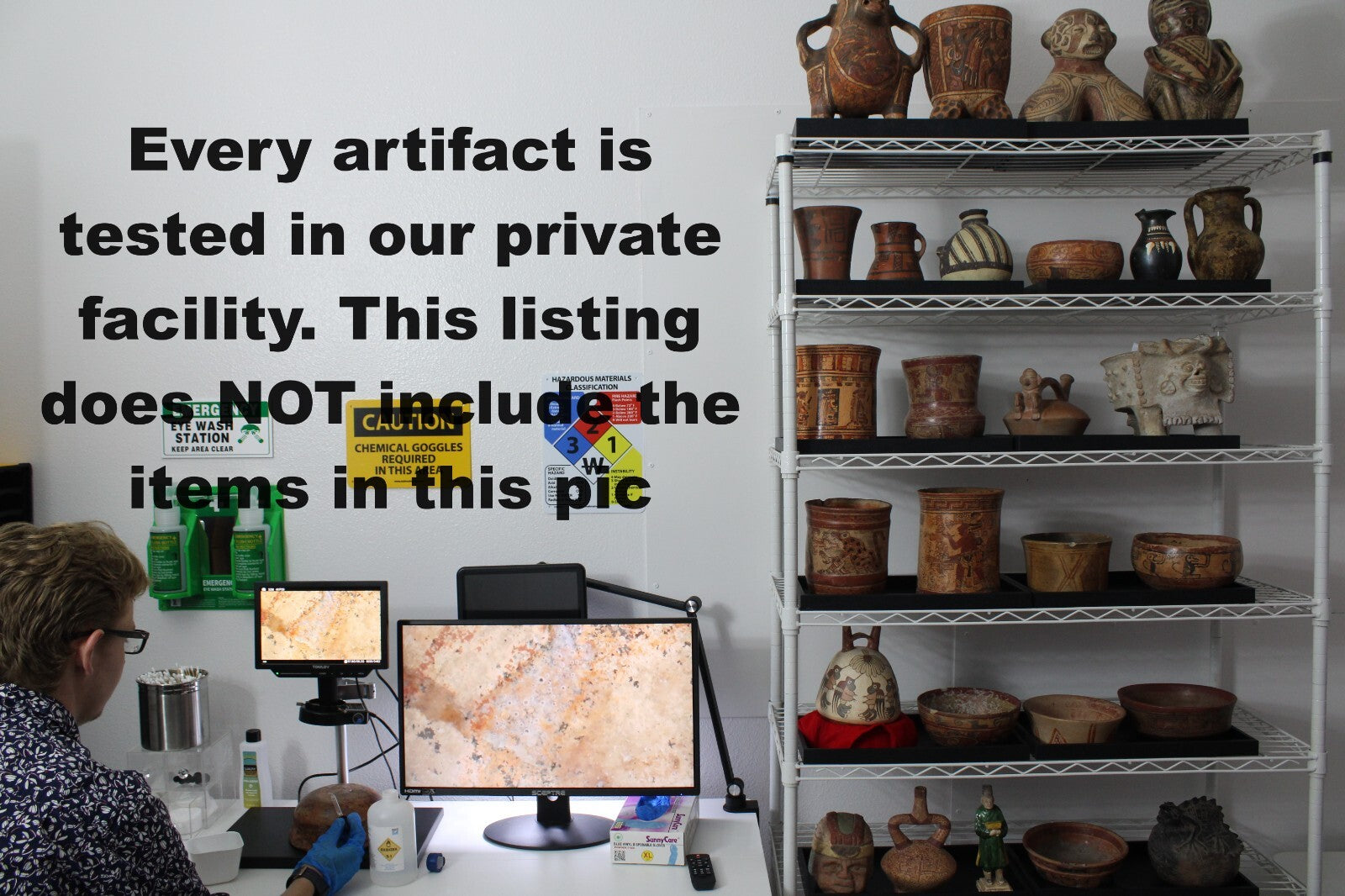 Right arm and left foot reattached. The Colima culture buried their fallen with figurines like this stunning example so the dead would have companionship in the afterlife. The Colima utilized shaft tombs extensively. A shaft was dug a few feet and a tomb dug out at the bottom of the shaft. The deceased was gently lowered down the shaft into the tomb. The burial buddy was lowered with the deceased so they would not be lonely in the afterlife. Pretty cool eh?