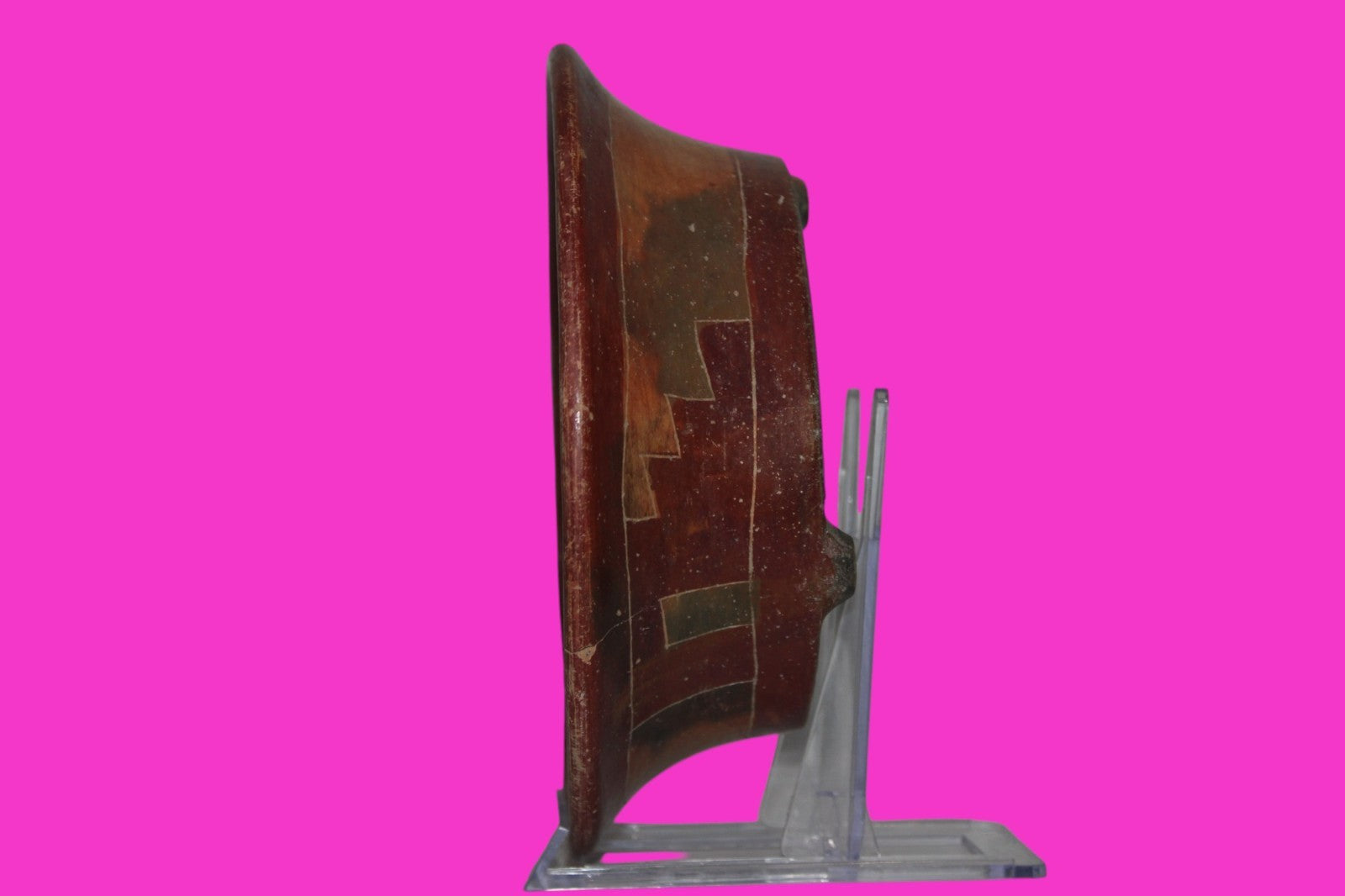 Dimensions: 2 ¼ inches tall, 7 inches wide, weighs 414 grams. Description: Tripod bowl with multi color geometric decorations. No repairs or restorations. Abrasions, wear consistent with age. Overall outstanding condition. Provenance: Ex. Private Tampa, FL collection, acquired in the 1980’s. Acquired by John McIntosh, MSE, MBA of Ancient Artifacts & Treasures, Winter Park, FL in 2020. Consigned to The Artifact City Collection in 2025.