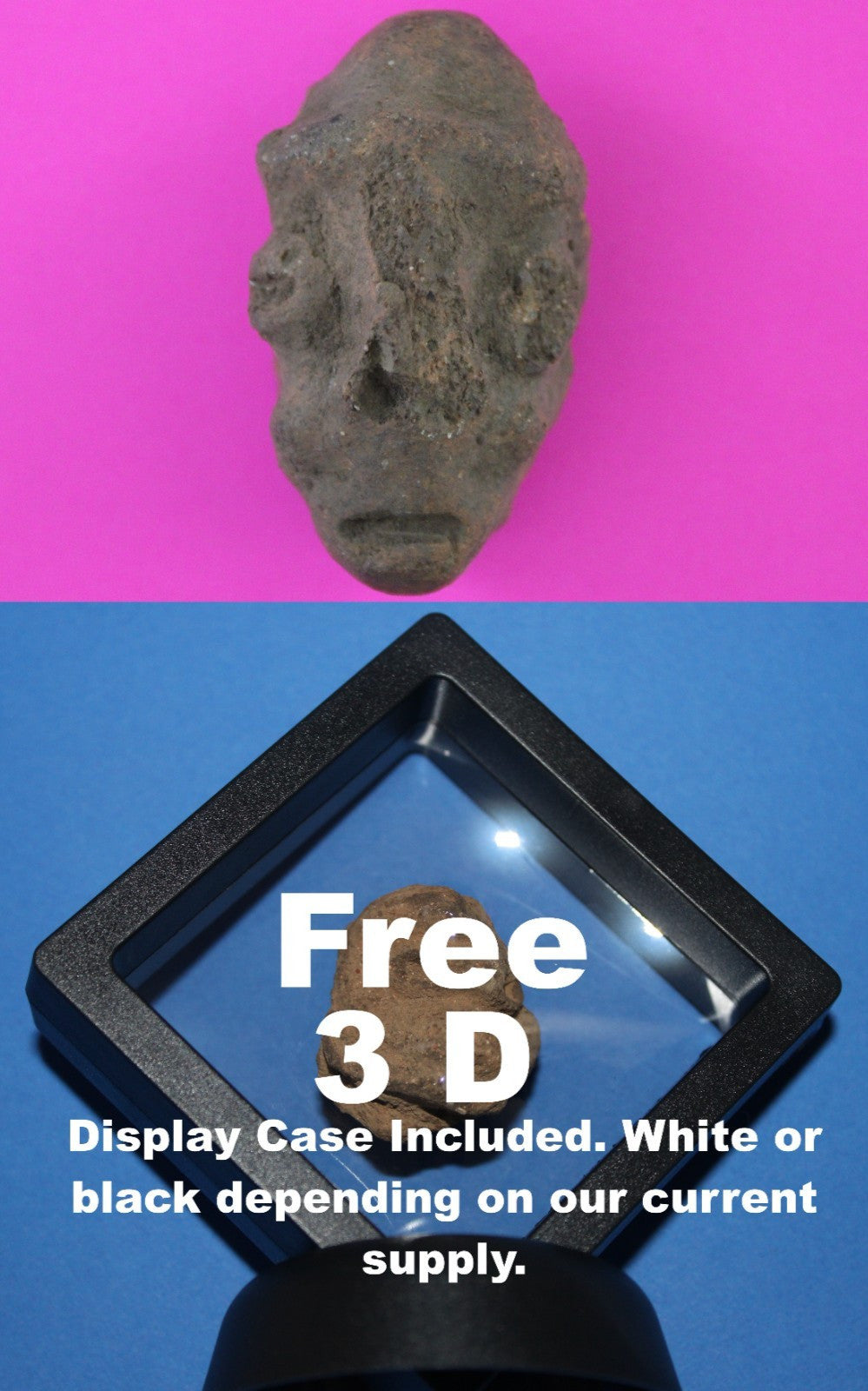 This pottery face is an authentic artifact of the Taino Culture from modern day Puerto Rico and dates from 1000 to 1400 AD. Pre-Columbian Taino’s flourished in Puerto Rico and Hispaniola. Their advanced pottery reflected the respect they had for the many indigenous animals in their surroundings. Taino’s were a very proud and spiritual people. Their legacy lives on in the DNA of their Puerto Rican ancestors.