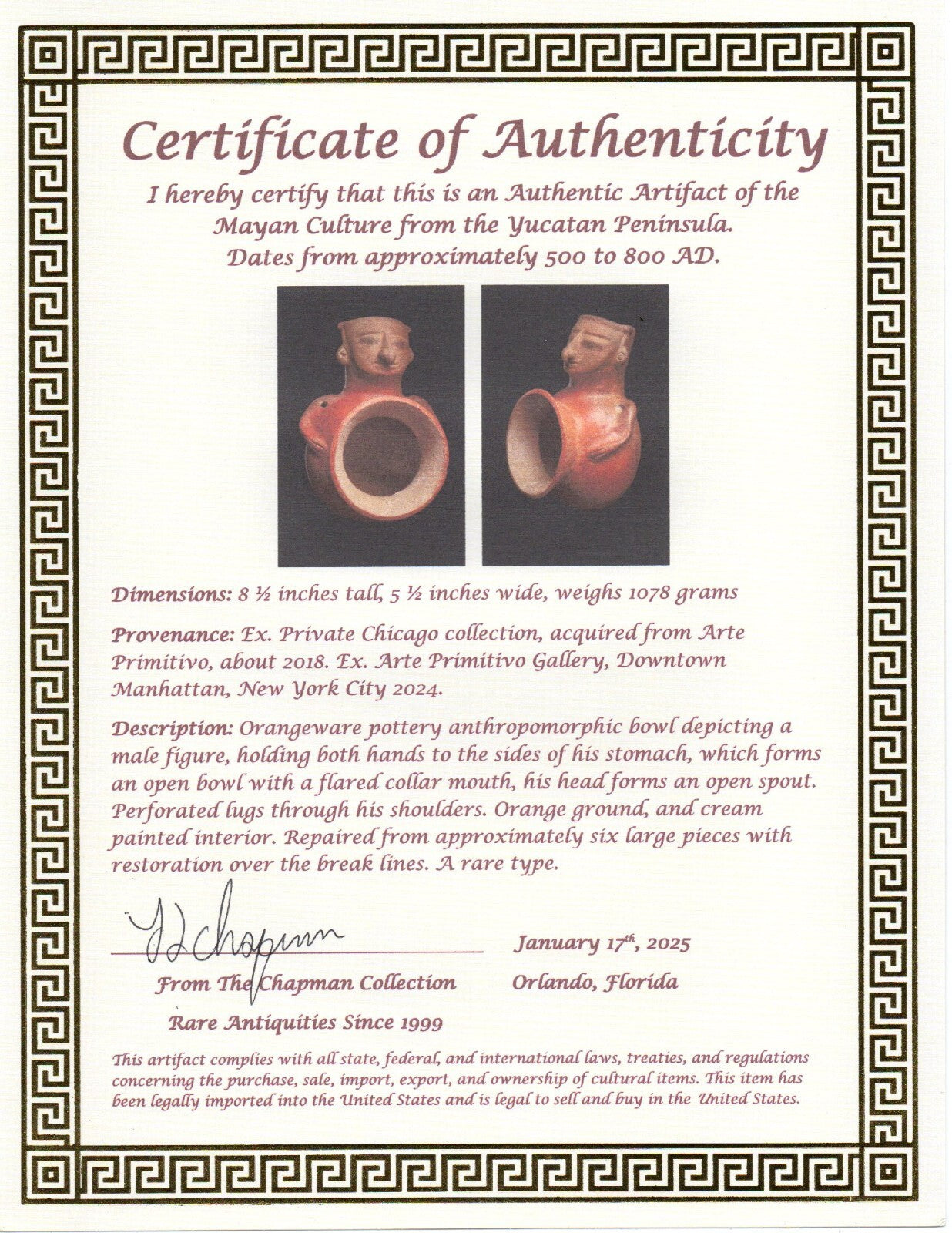 Rare Mayan Belly Bowl Authentic Pre Columbian Artifact Arte Primitivo COA T115