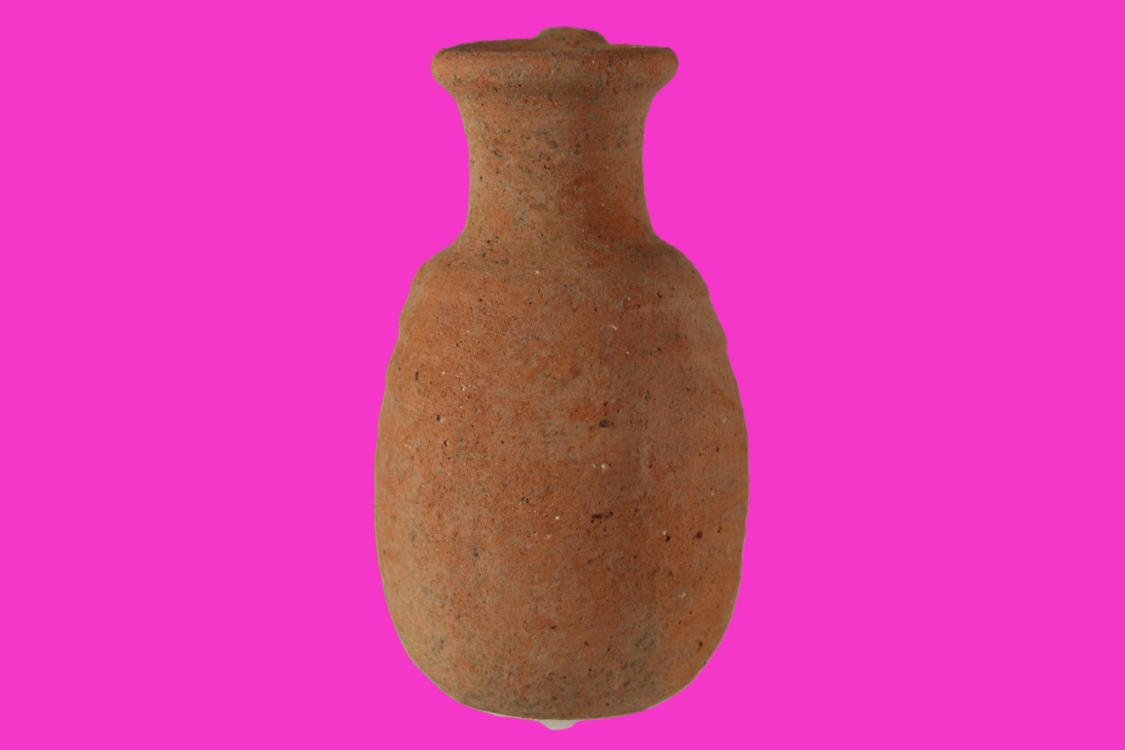 Dimensions: 4 ¾ inches tall, 2 ½ inches wide, weighs 141 grams Provenance: Ex private Nevada collection, acquired in the aftermath of the 1967 6 day war. Acquired by The Artifact City Collection in 2025. Description: Redware terra cotta jug. Mineral deposits indicative of approximately 2000 years of underground burial. Small rim chips and surface loss. Small scrapes from a prodding rod used during the excavation process. No repairs or restorations found. Overall Outstanding condition. Christian theology includes the beliefs that Jesus was conceived by the Holy Spirit, was born of a virgin named Mary, performed miracles, founded the Christian Church, died by crucifixion as a sacrifice to achieve atonement for sin, rose from the dead, and ascended into Heaven from where he will return.