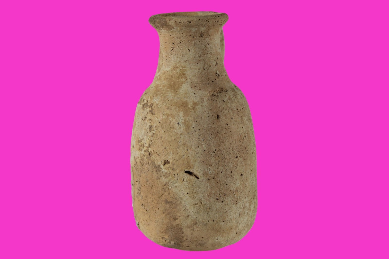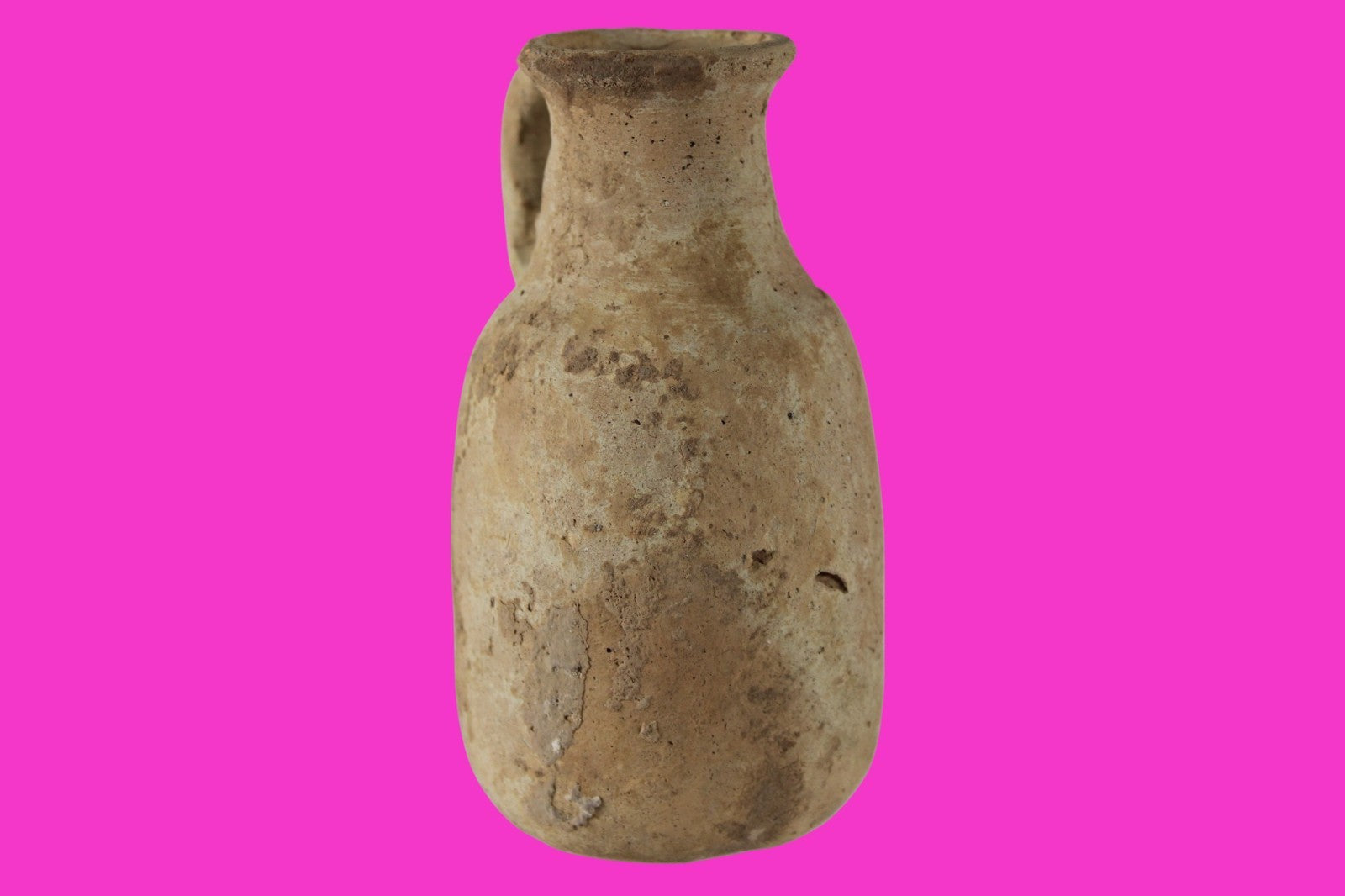 Dimensions: 4 ¾ inches tall, 2 ½ inches wide, weighs 160 grams Provenance: Ex private Nevada collection, acquired in the aftermath of the 1967 6 day war. Acquired by The Artifact City Collection in 2025. Description: Redware terra cotta jug. Mineral deposits indicative of approximately 2000 years of underground burial. Small rim chips and surface loss. Small scrapes from a prodding rod used during the excavation process. No repairs or restorations found. Overall Outstanding condition. Christian theology includes the beliefs that Jesus was conceived by the Holy Spirit, was born of a virgin named Mary, performed miracles, founded the Christian Church, died by crucifixion as a sacrifice to achieve atonement for sin, rose from the dead, and ascended into Heaven from where he will return.