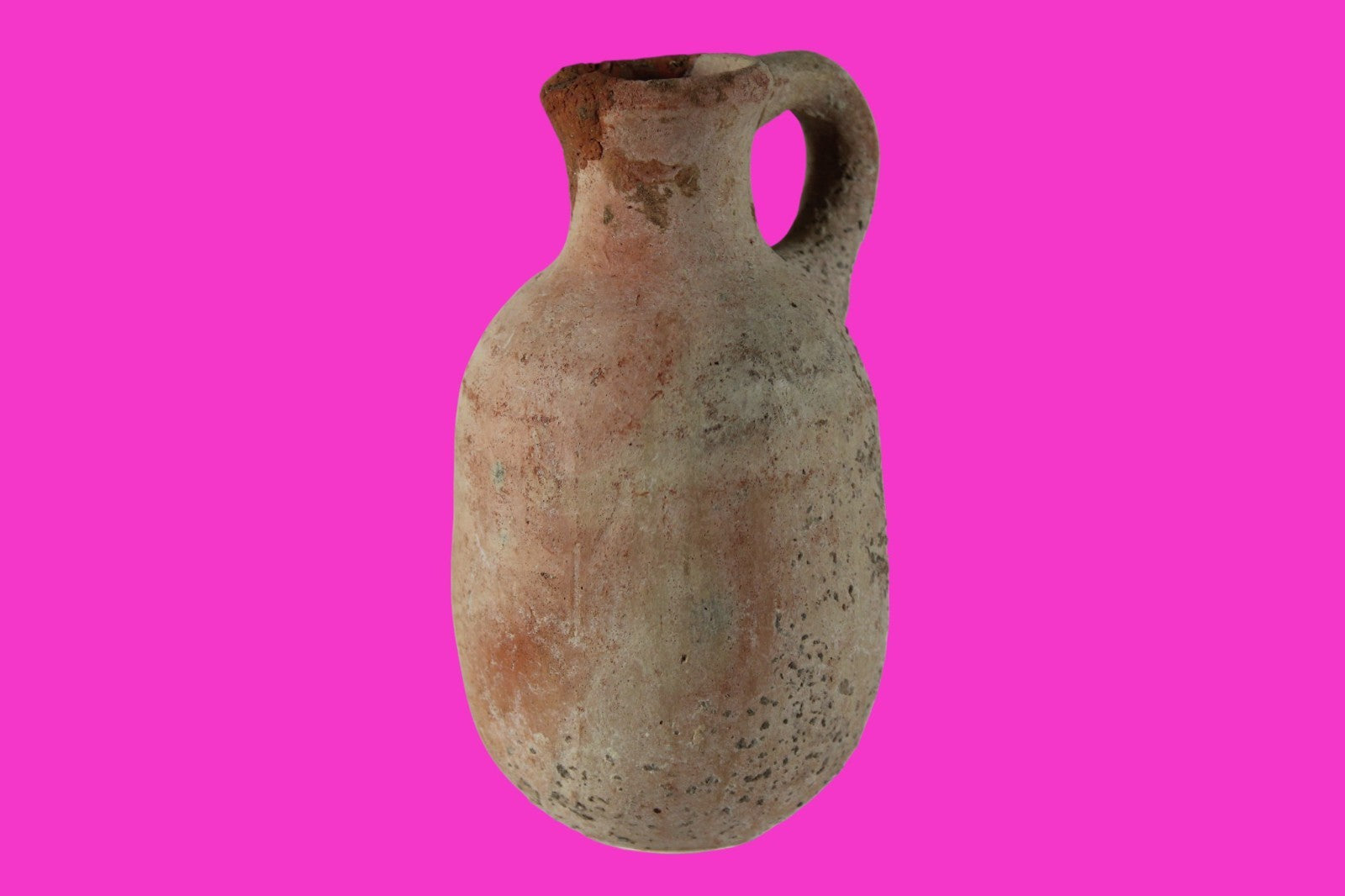 Dimensions: 5 inches tall, 2 ¾ inches wide, weighs 190 gramsProvenance: Ex private Nevada collection, acquired in the aftermath of the 1967 6 day war. Acquired by The Artifact City Collection in 2025. Description: Redware terra cotta jug. Spout crudely repaired, possibly an old ancient repair as this was a common practice in antiquity. Excellent condition. Manganese Dioxide Reactivity Test Results: 40% hydrogen peroxide was applied to multiple manganese blooms that resulted in a chemical reaction confirming several centuries of underground burial.Christian theology includes the beliefs that Jesus was conceived by the Holy Spirit, was born of a virgin named Mary, performed miracles, founded the Christian Church, died by crucifixion as a sacrifice to achieve atonement for sin, rose from the dead, and ascended into Heaven from where he will return.