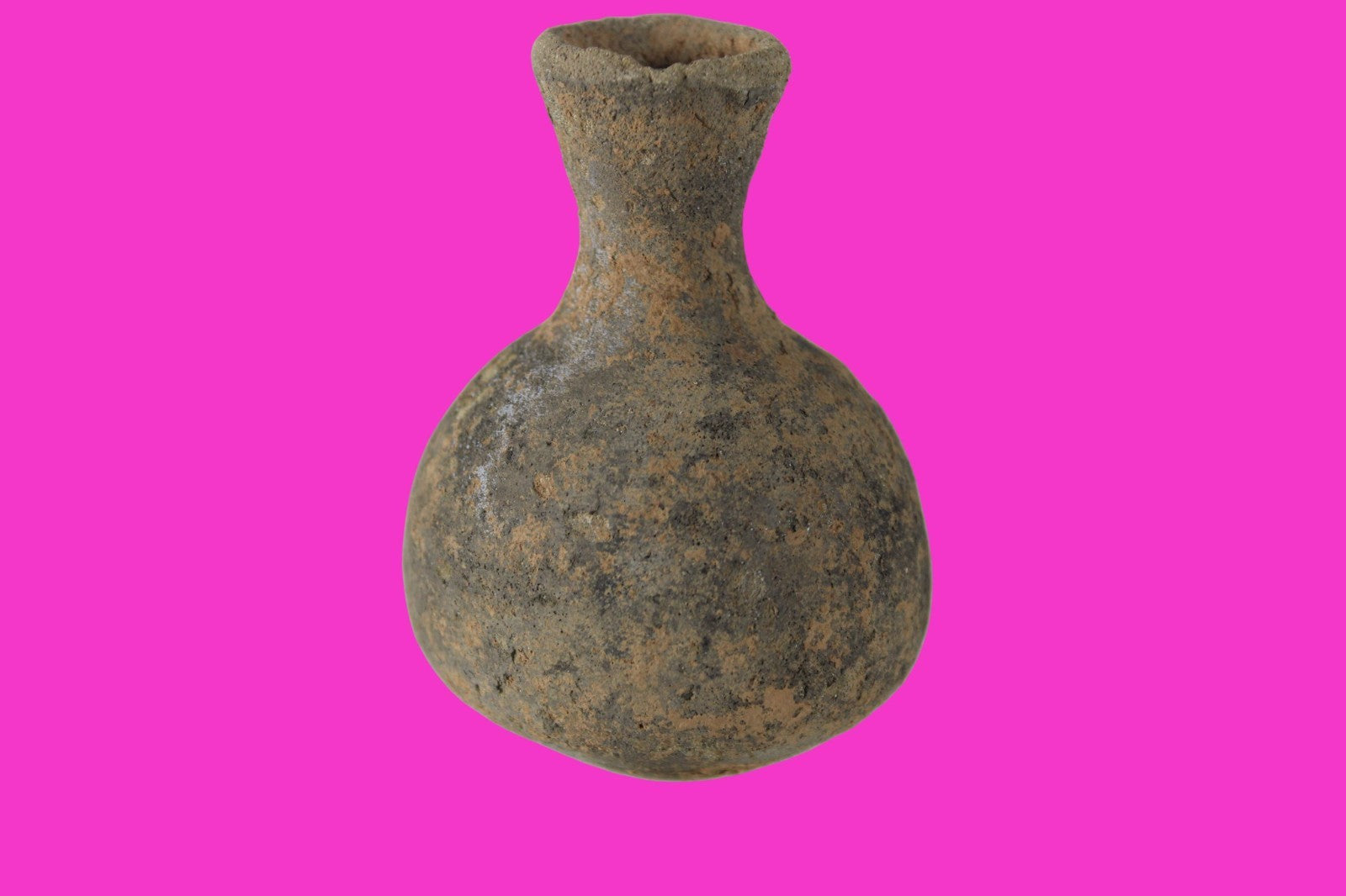 Dimensions: 2 ¾ inches tall, 2 ¼ inches wide, weighs 50 grams Provenance: Ex private Nevada collection, discovered in the aftermath of the 1967 6 day war. Acquired by The Artifact City Collection in 2025. Description: Blackware terra cotta jug. Mineral deposits indicative of approximately 3000 years of underground burial. Small rim chips and surface loss. No repairs or restorations found. Overall Outstanding condition. King David is often looked upon as the most successful military conqueror in the history of the Israelite nation. By the end of his reign in 971 BC, the boundaries of Israel and the neighboring vassal kingdoms who paid tribute to David stretched across the Fertile Crescent from the Wadi of Egypt to the River Euphrates.